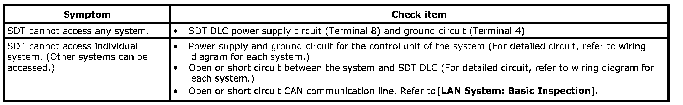 If the SDT cannot diagnose the system properly, check the following items.