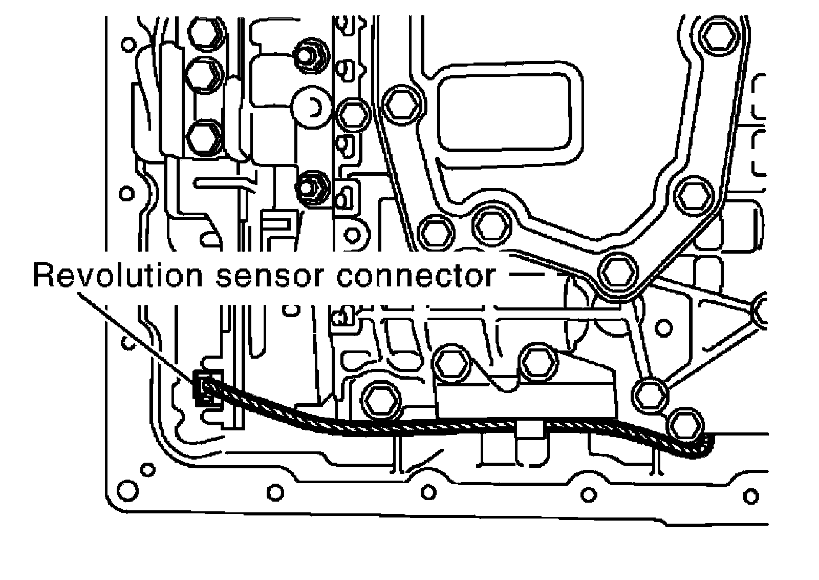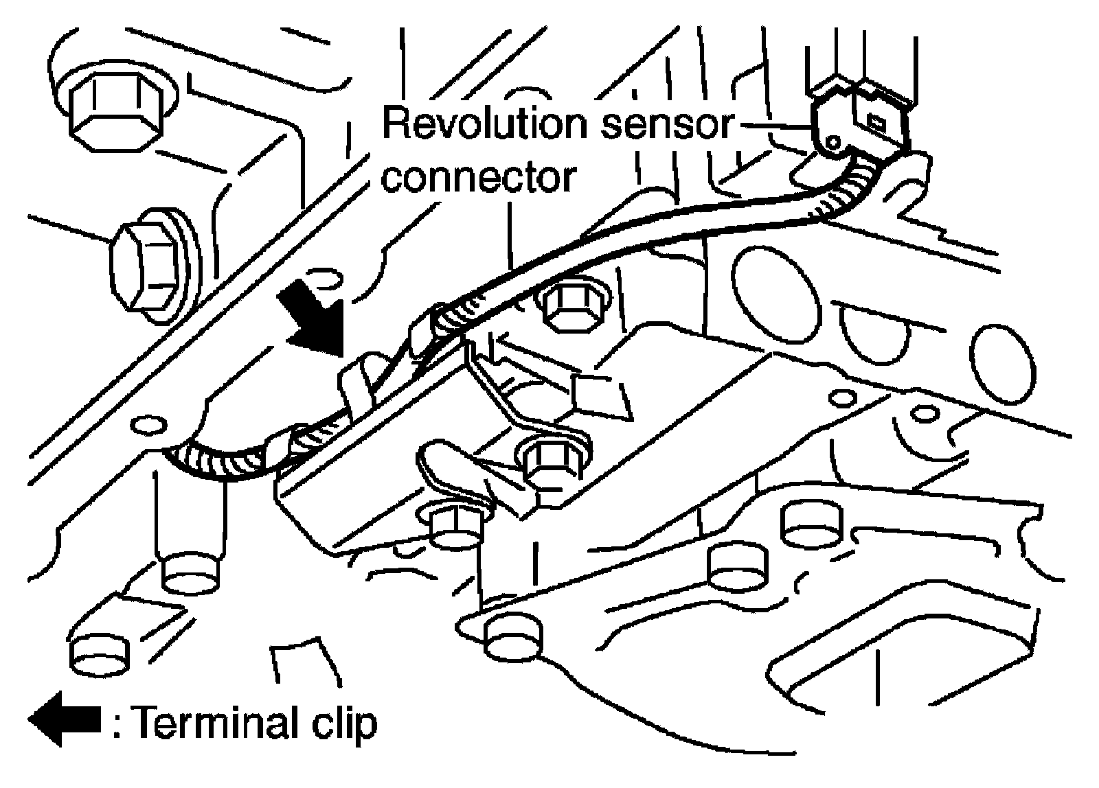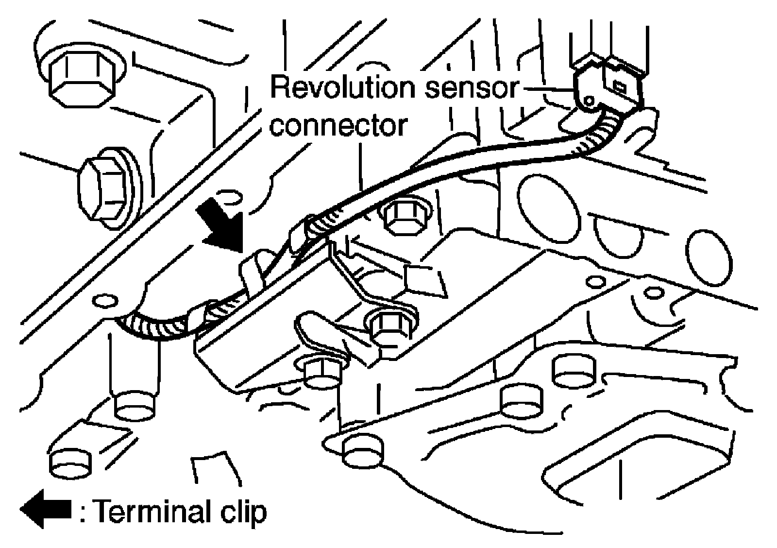 ^ Hang down revolution sensor harness toward outside so as not to disturb installation of control valve with TCM.