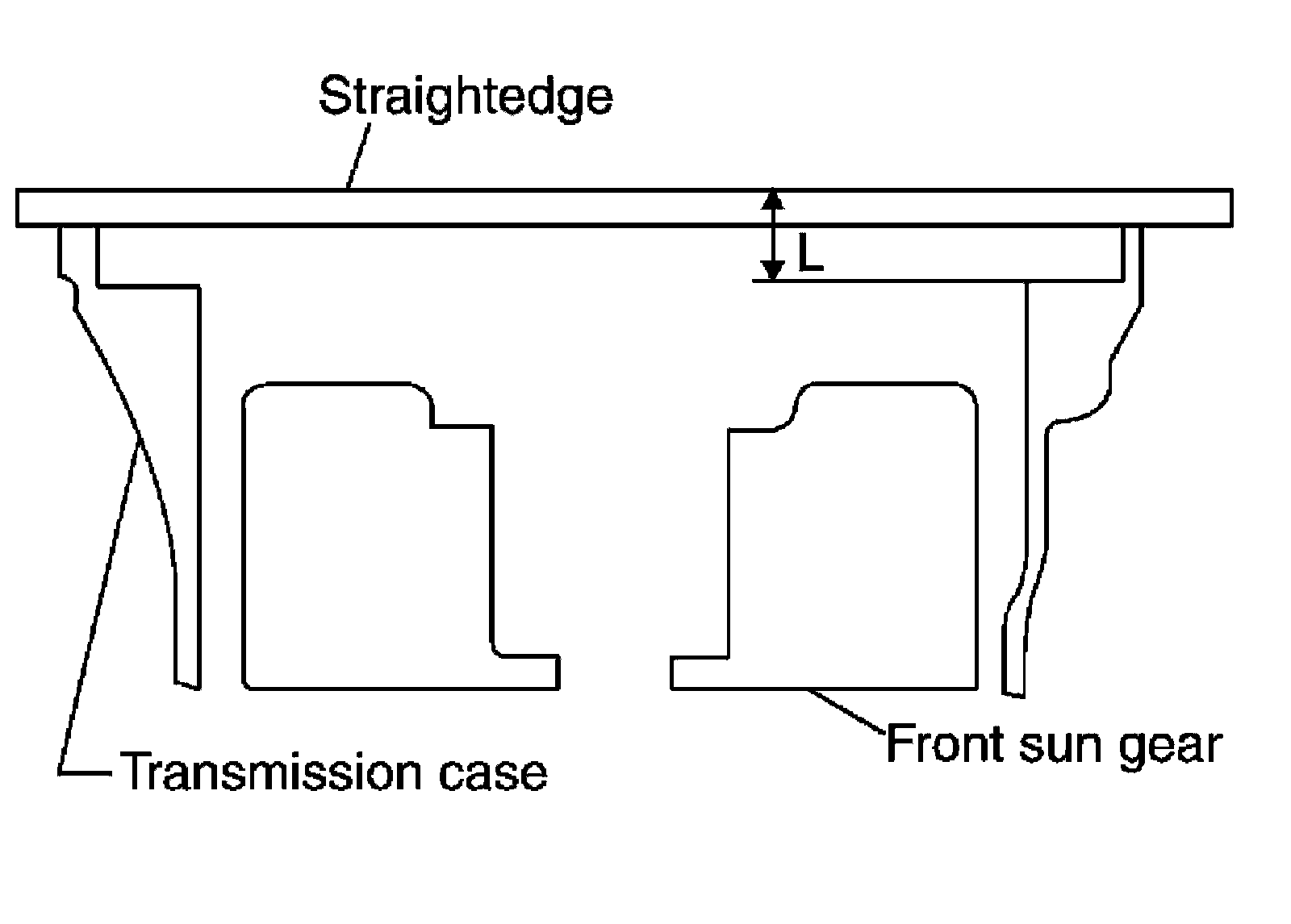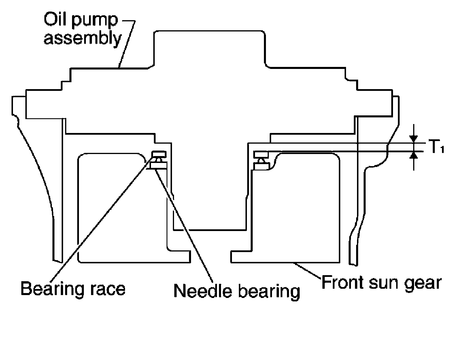 ^ Measure clearance between front sun gear and bearing race for oil pump cover.