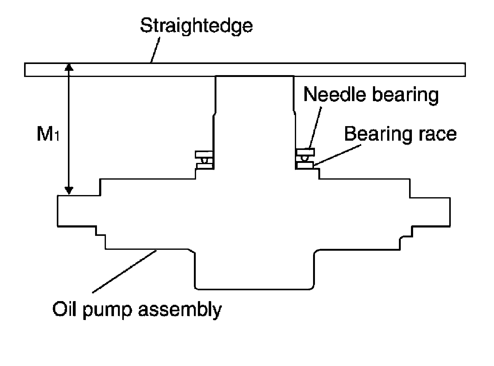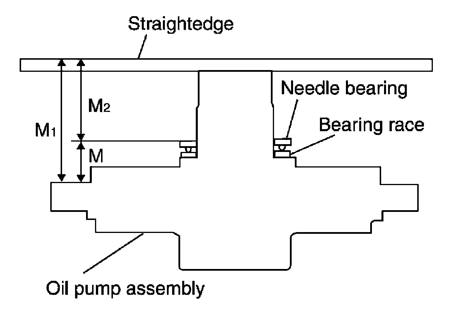"M": Distance between transmission case fitting surface of oil pump and needle bearing on oil pump.