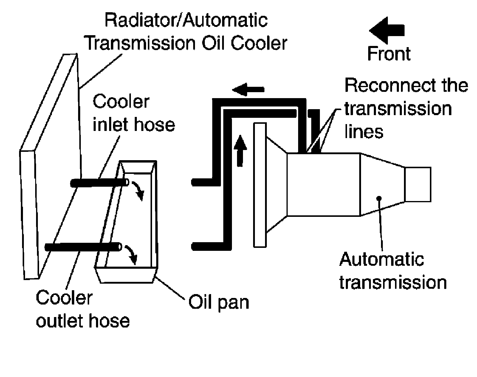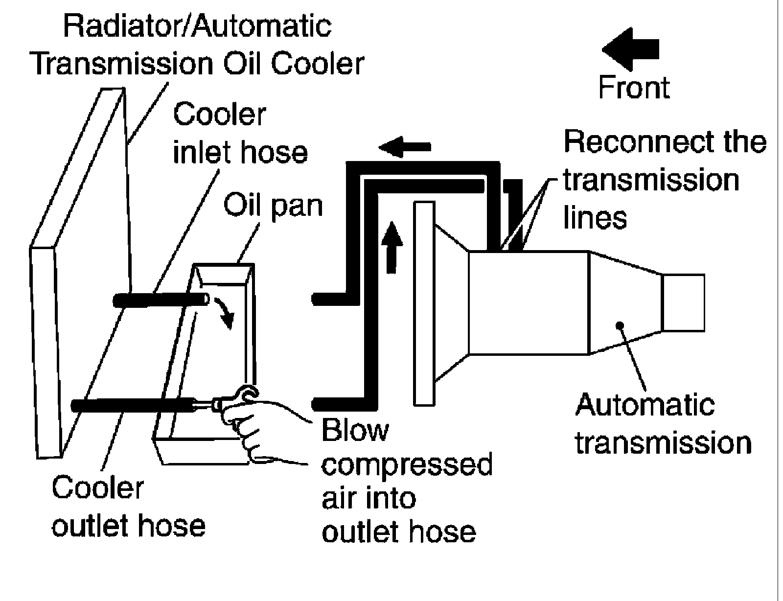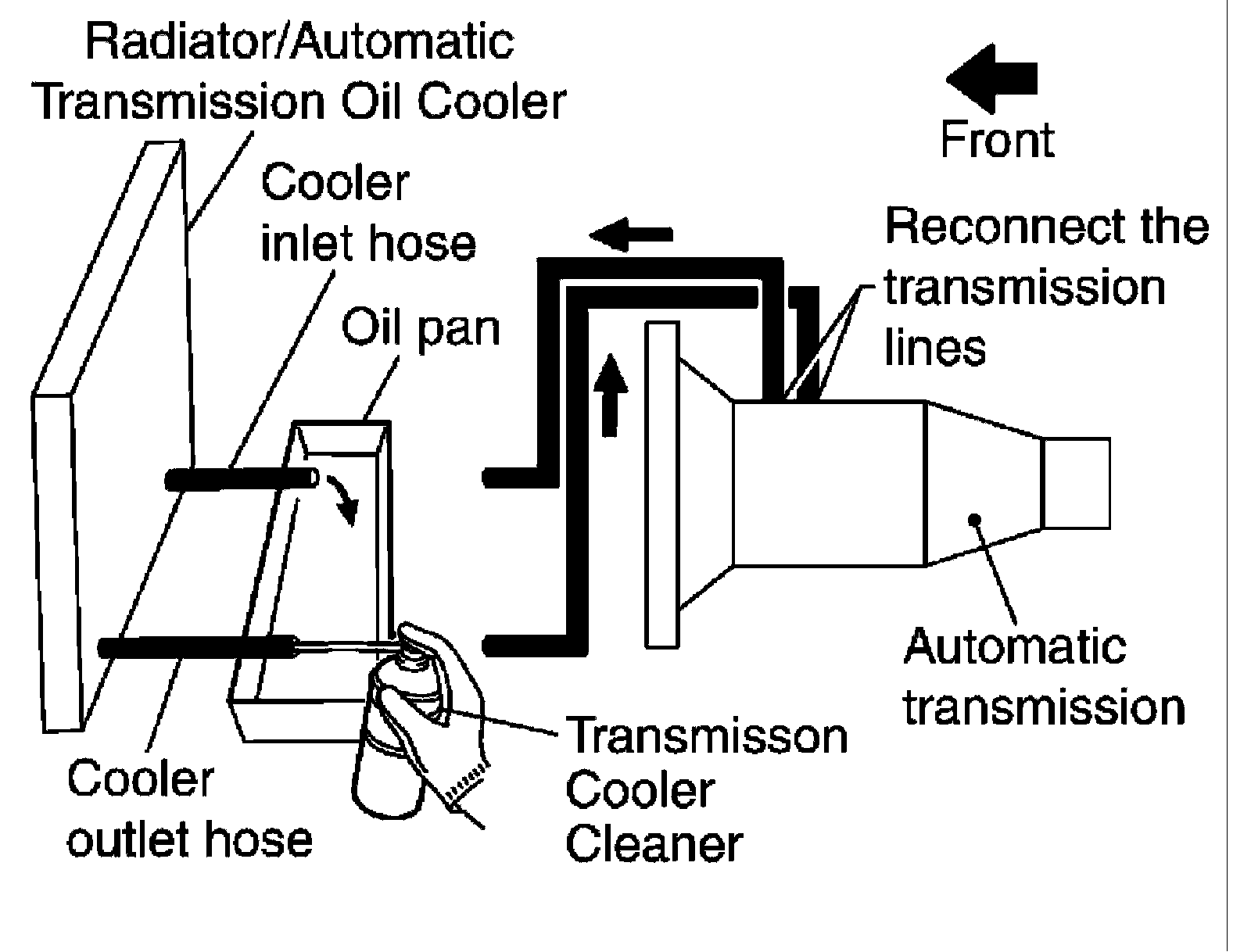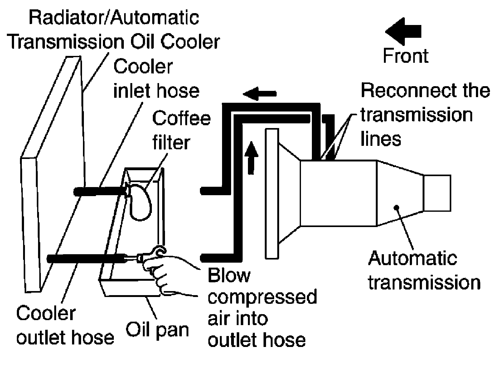Debris, if present, may build up as A/T fluid enters the cooler inlet. It will be necessary to back flush the cooler through the cooler outlet in order to flush out any built up debris.