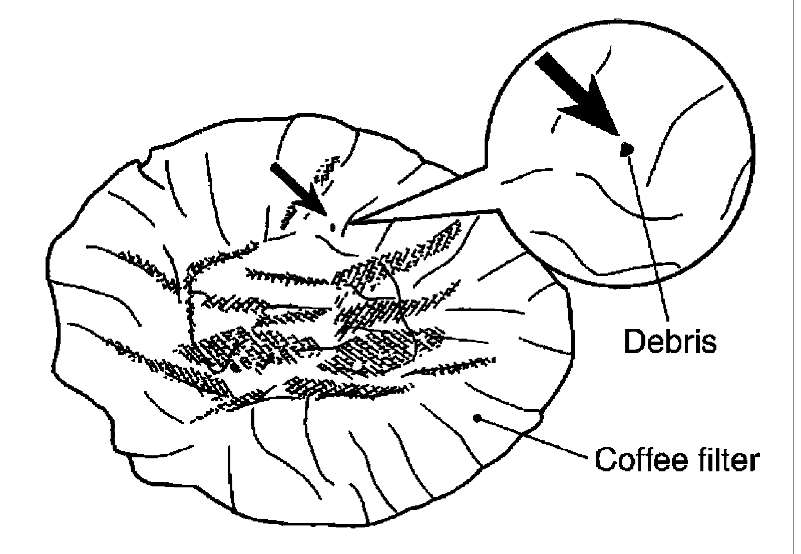 a) If small metal debris less than 1mm (0.040 in) in size or metal powder is found in the coffee filter, this is normal. If normal debris is found, the A/T fluid cooler/radiator can be re-used and the procedure is ended.