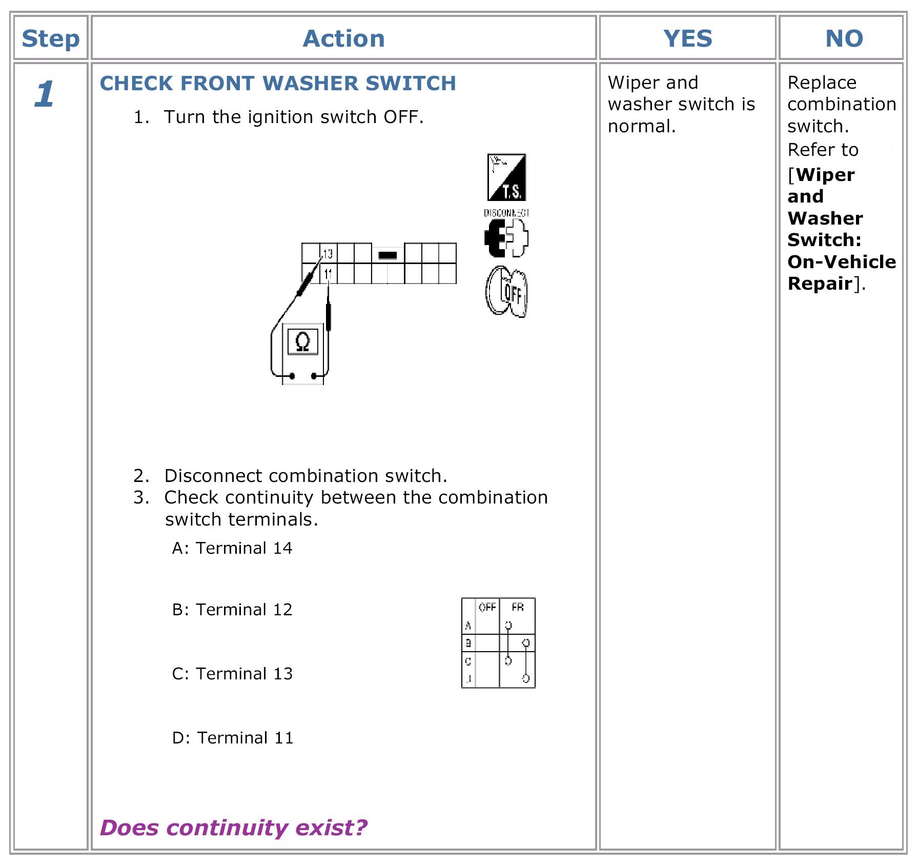Washer Switch Circuit Check