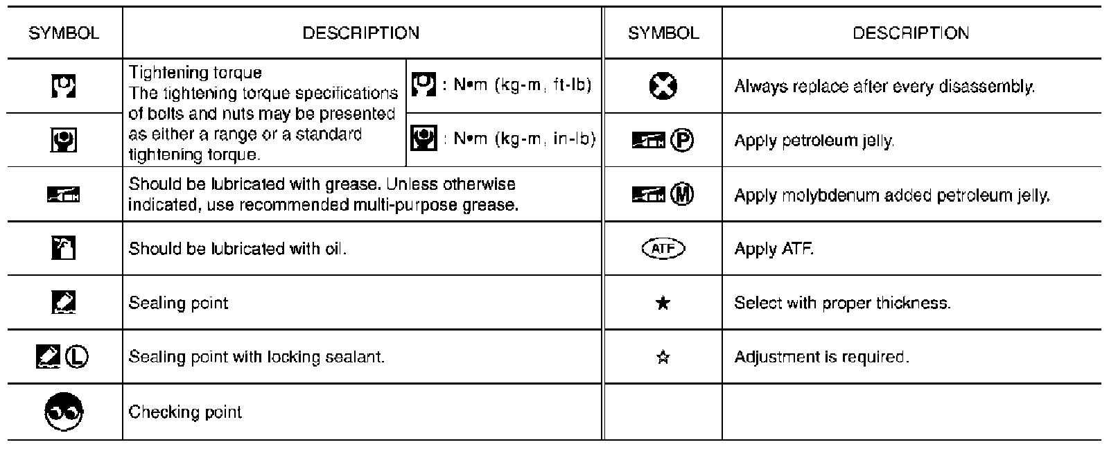 Key to Symbols Used In Illustrations