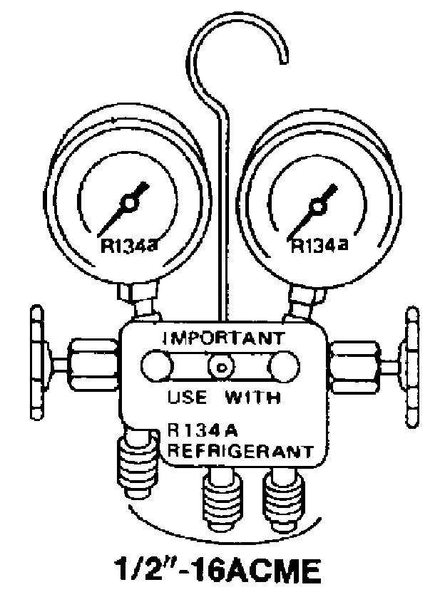 Be certain that the gauge face indicates HFC-134a (R-134a). Make sure the gauge set has 1/2"-16 ACME threaded connections for service hoses. Confirm the set has been used only with refrigerant HFC-134a (R-134a) along with specified oil.