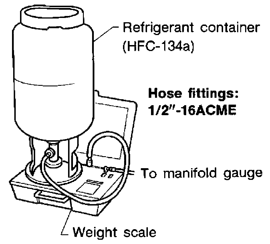 Verify that no refrigerant other than HFC134a (R-134a) and specified oils have been used with the scale. If the scale controls refrigerant flow electronically, the hose fitting must be 1/2"-16 ACME.