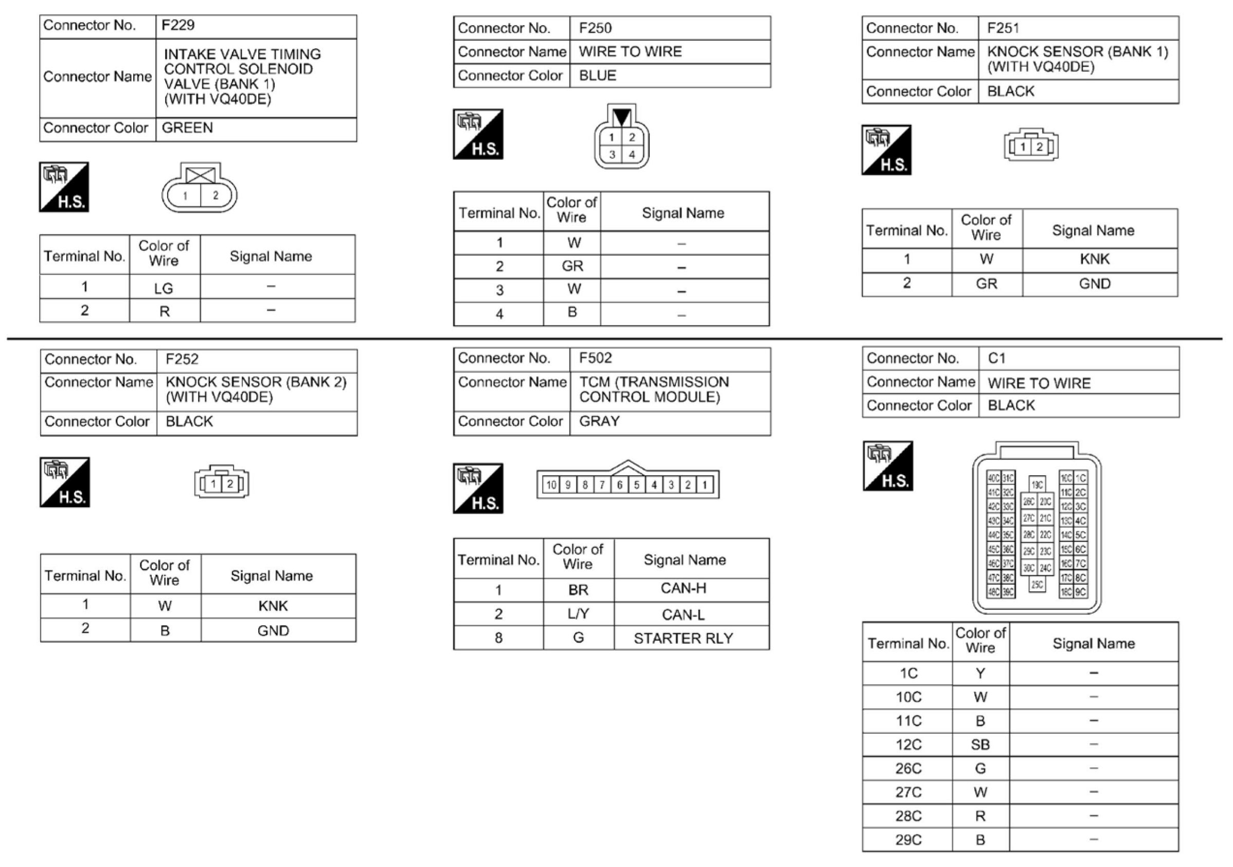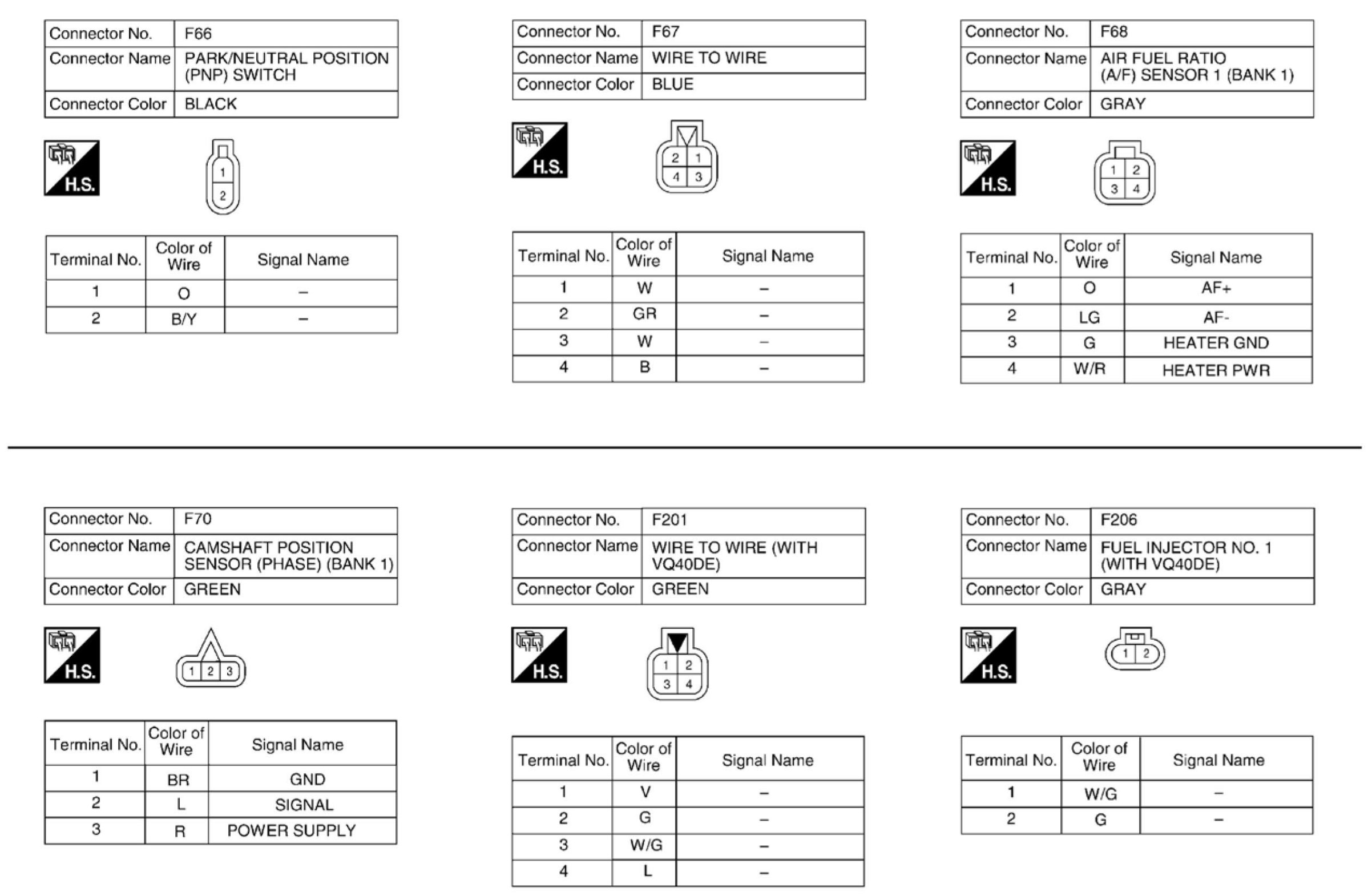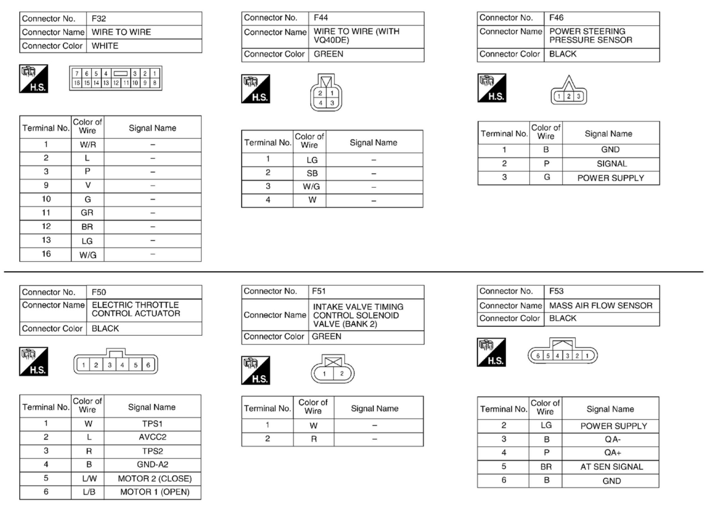 Engine Control System Connectors - VQ40DEEngine Control System Connectors (Part 1):