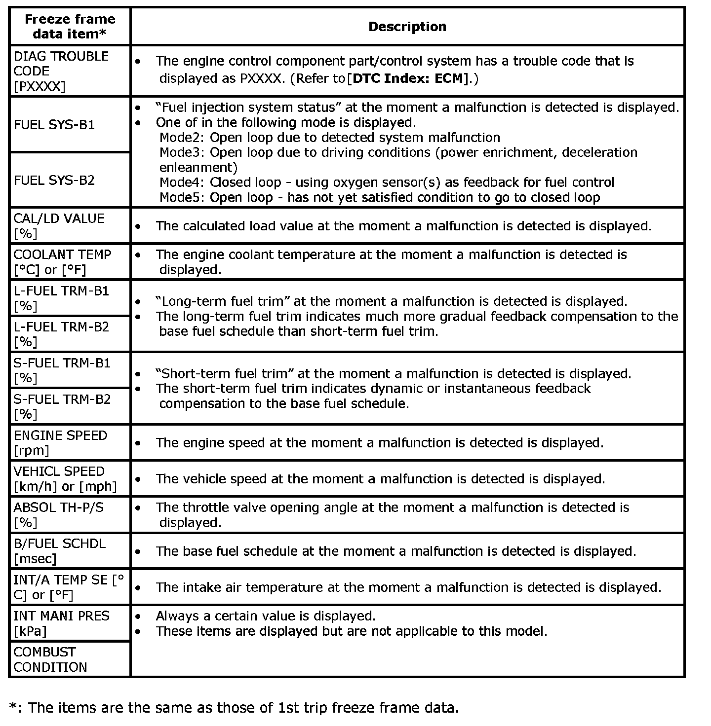 Freeze Frame Data and 1st Trip Freeze Frame Data