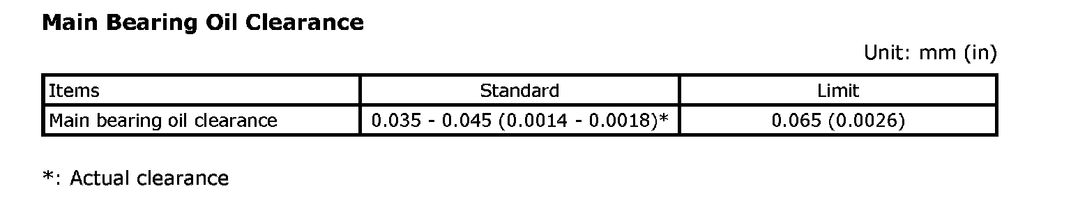 Main Bearing Oil Clearance
