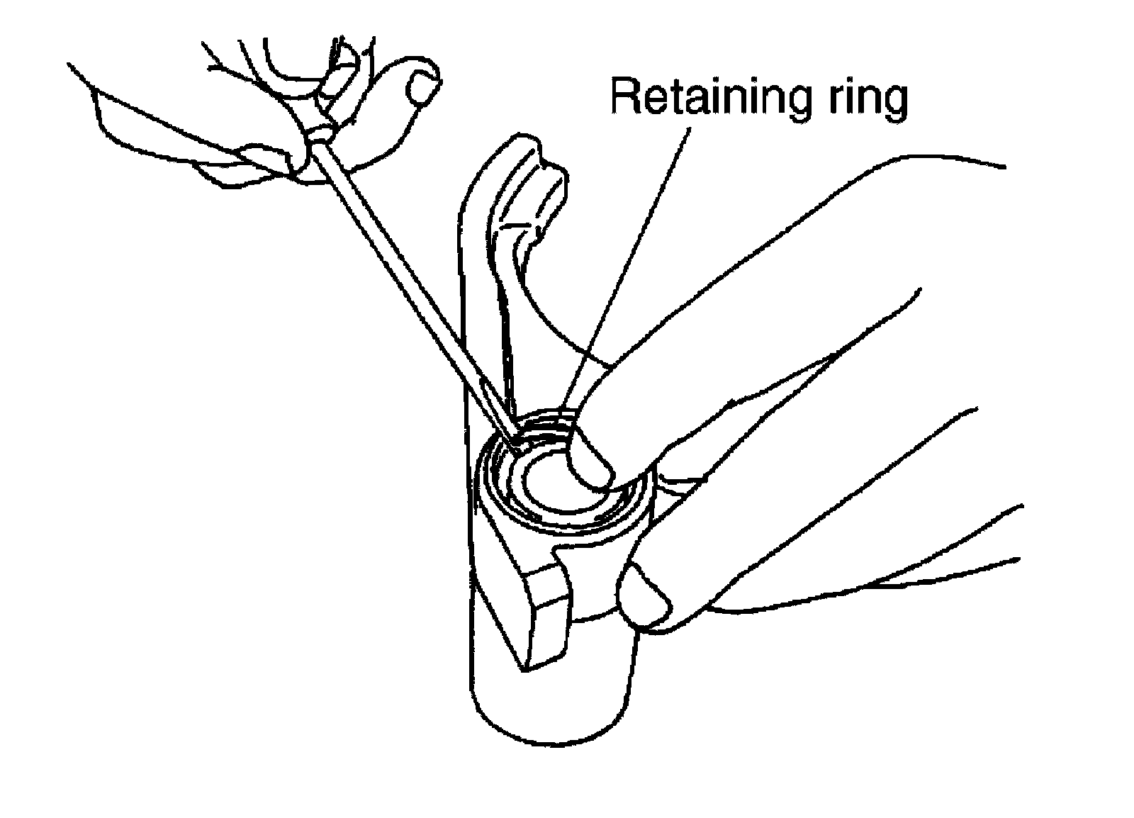 7) Install the new snap ring to the control shift rod.