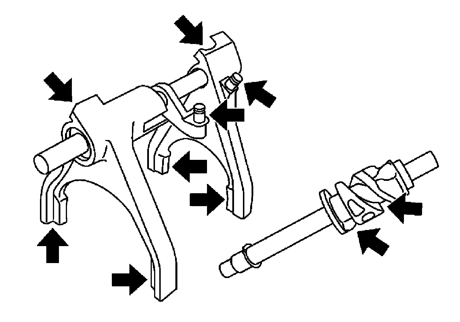 1) Install clevis pin and shift collar to L-H shift fork after assembling them.