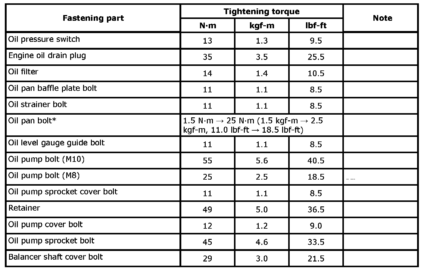 Tightening Torque SpecificationsCAUTION: