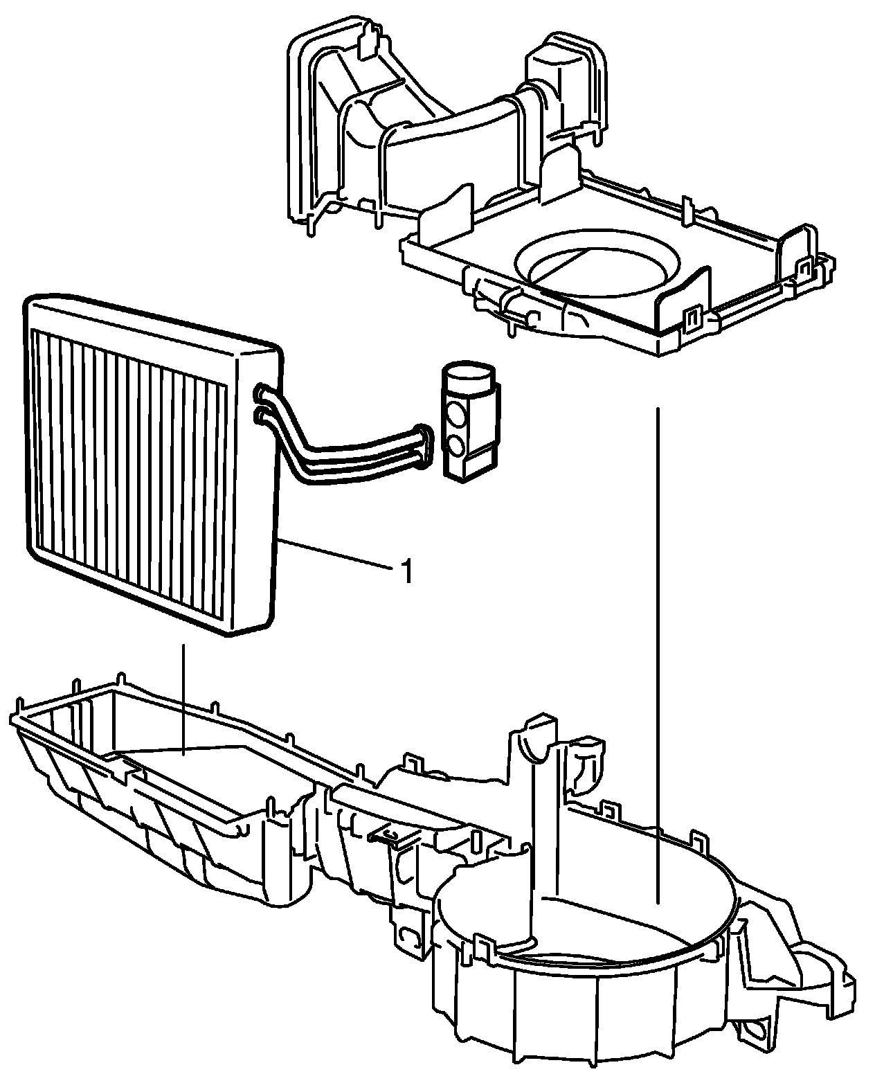 2. Remove evaporator (1) from HVAC unit by disassembling HVAC unit.