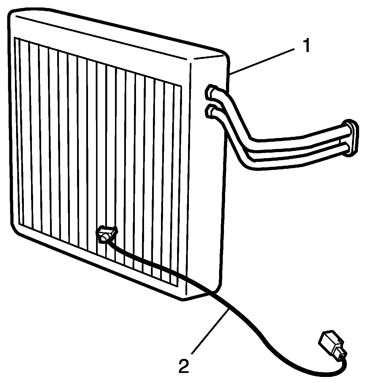 2. Remove A/C evaporator temperature sensor (2) from evaporator.