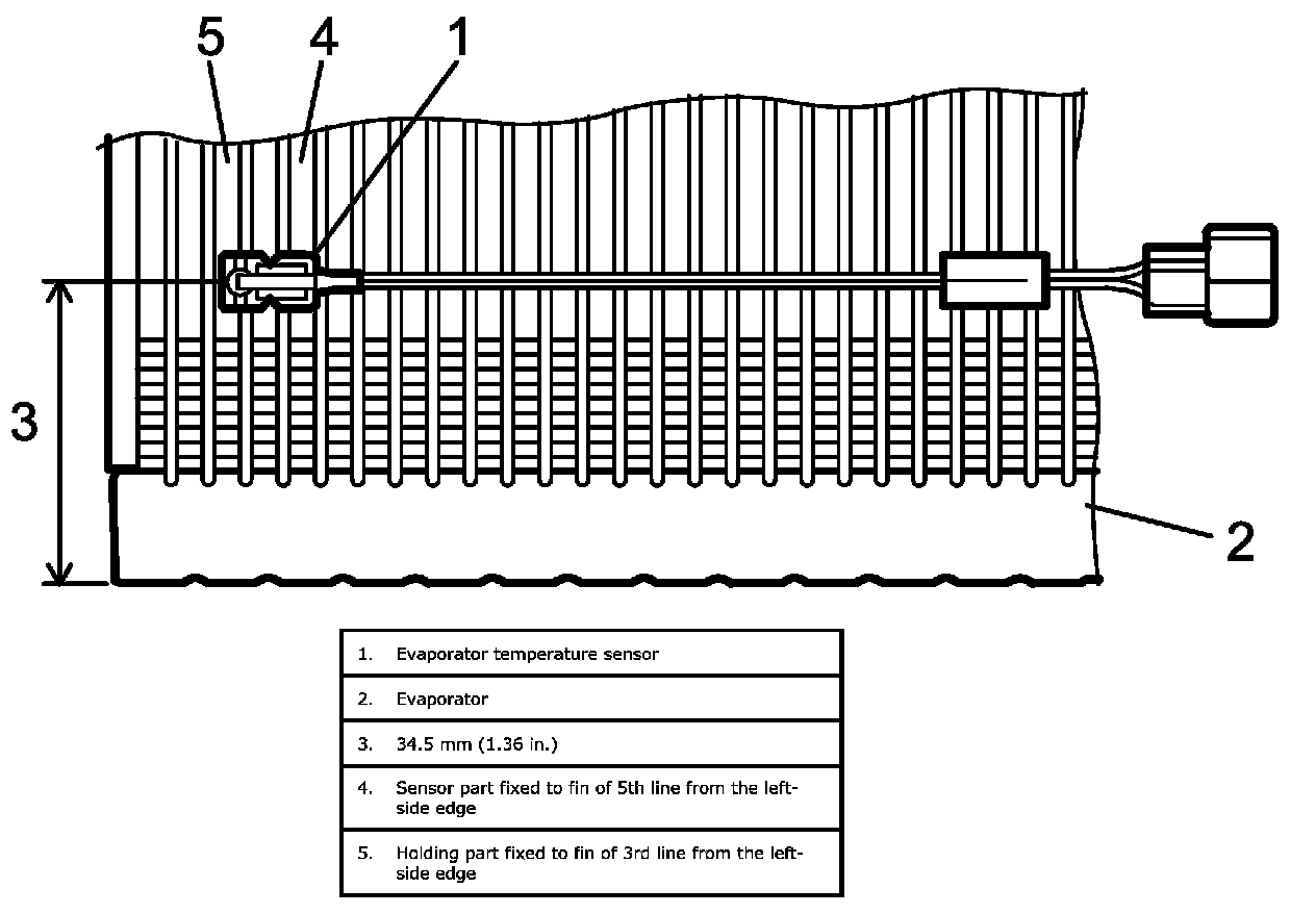 1. Install evaporator temperature sensor onto evaporator in specified position as shown in figure.