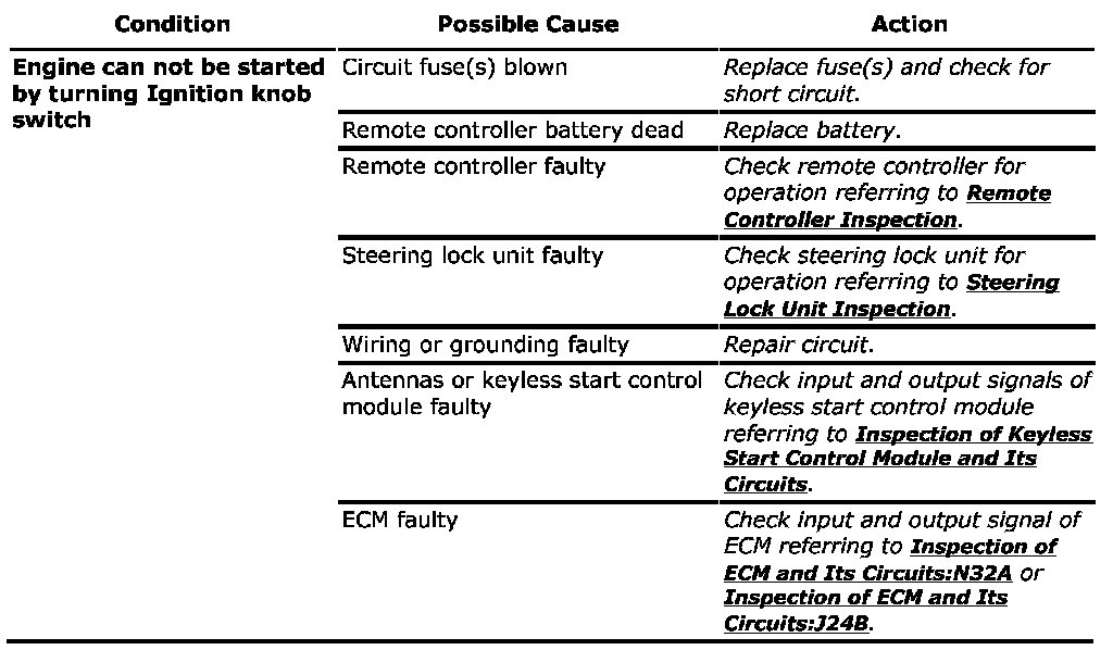 NOTE: Before performing symptom diagnosis procedure for keyless engine start system, check that engine starts by using ignition key. If it cannot be started by using ignition key, go to Engine Symptom Diagnosis: N32A or Engine Symptom Diagnosis: J24B. Engine Symptom Diagnosis