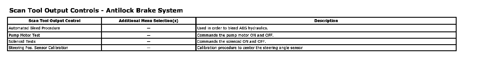 Scan Tool Output Controls - Antilock Brake System