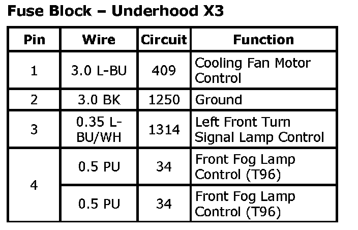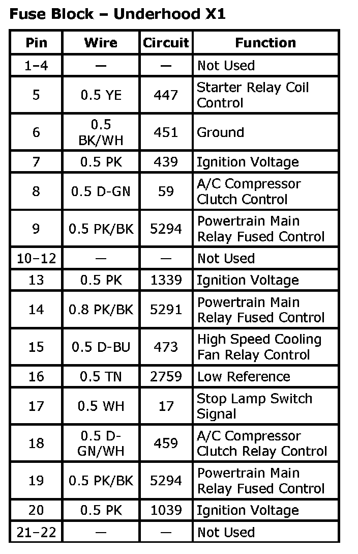 Fuse Block - Underhood X1 (Part 2):