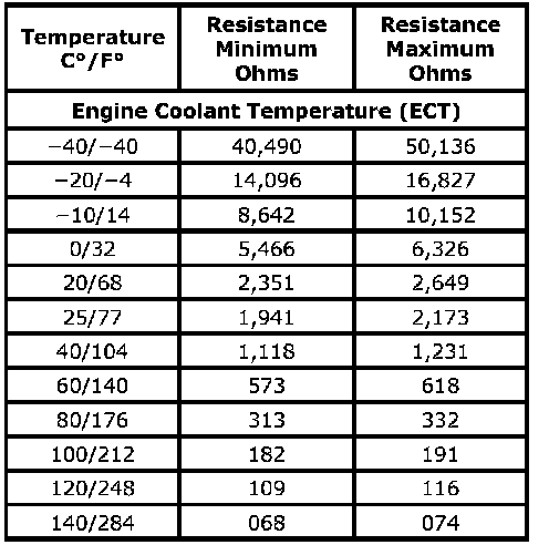 Temperature Versus Resistance - Engine Coolant Temperature SensorTemperature Versus Resistance - Engine Coolant Temperature Sensor: