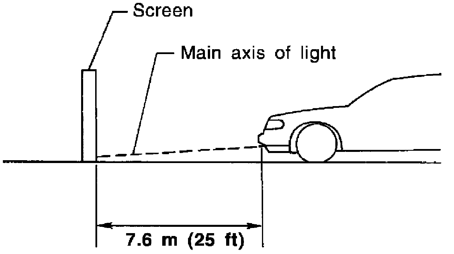 1. Set the distance between the screen and the center of the fog lamp lens as shown.