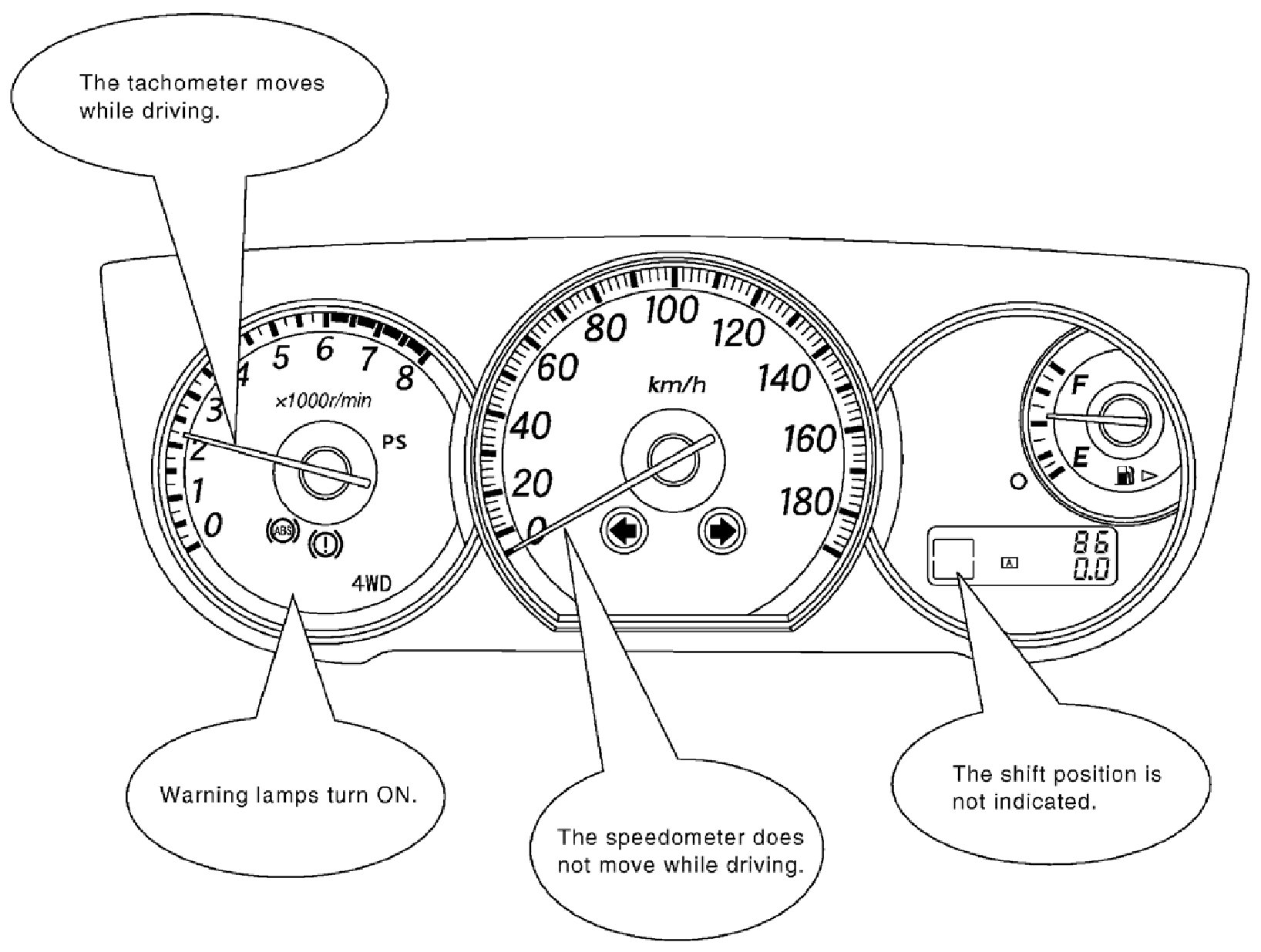 b. The tachometer moved normally: This means that "Engine speed signal" could communicate normally between ECM and M&A (4-b in the figure below).