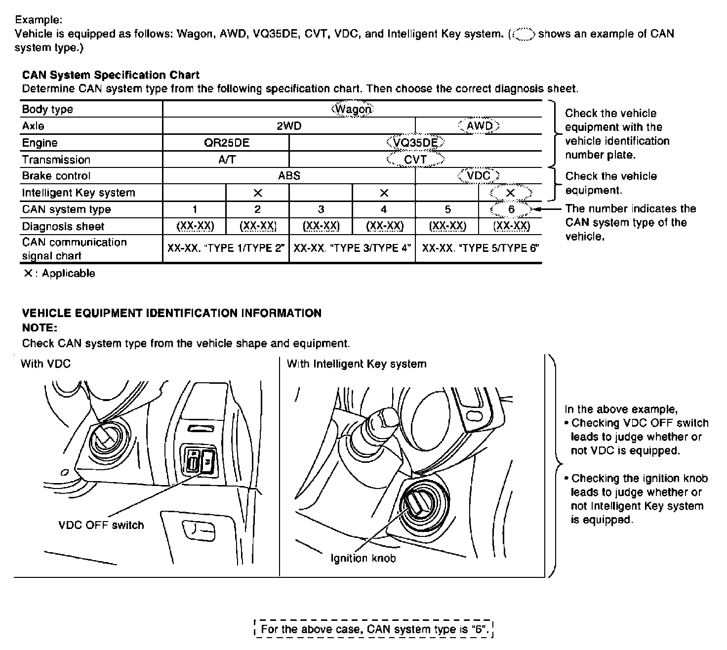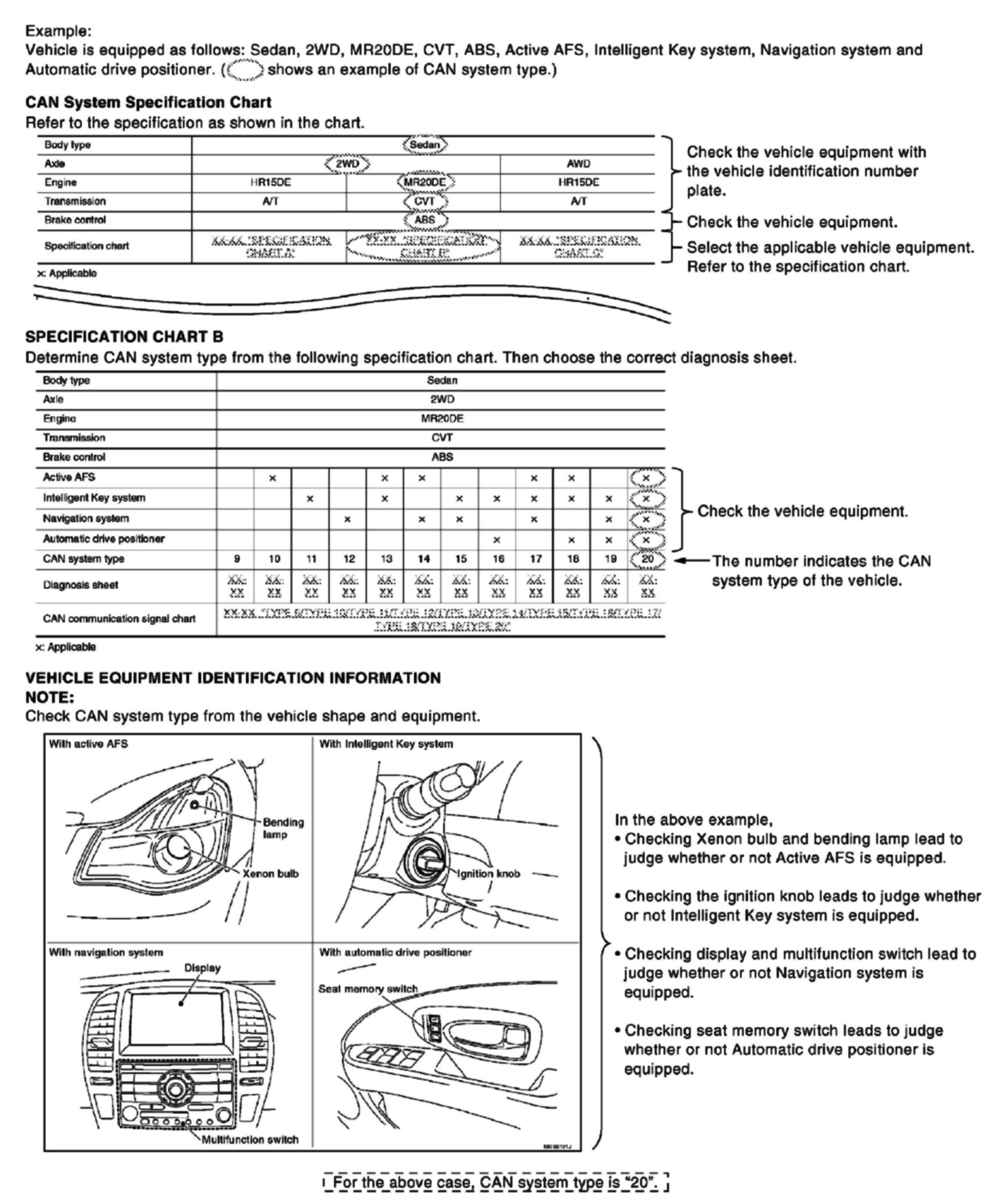 NOTE: CAN system type is easily checked with the vehicle equipment identification information shown in the chart.