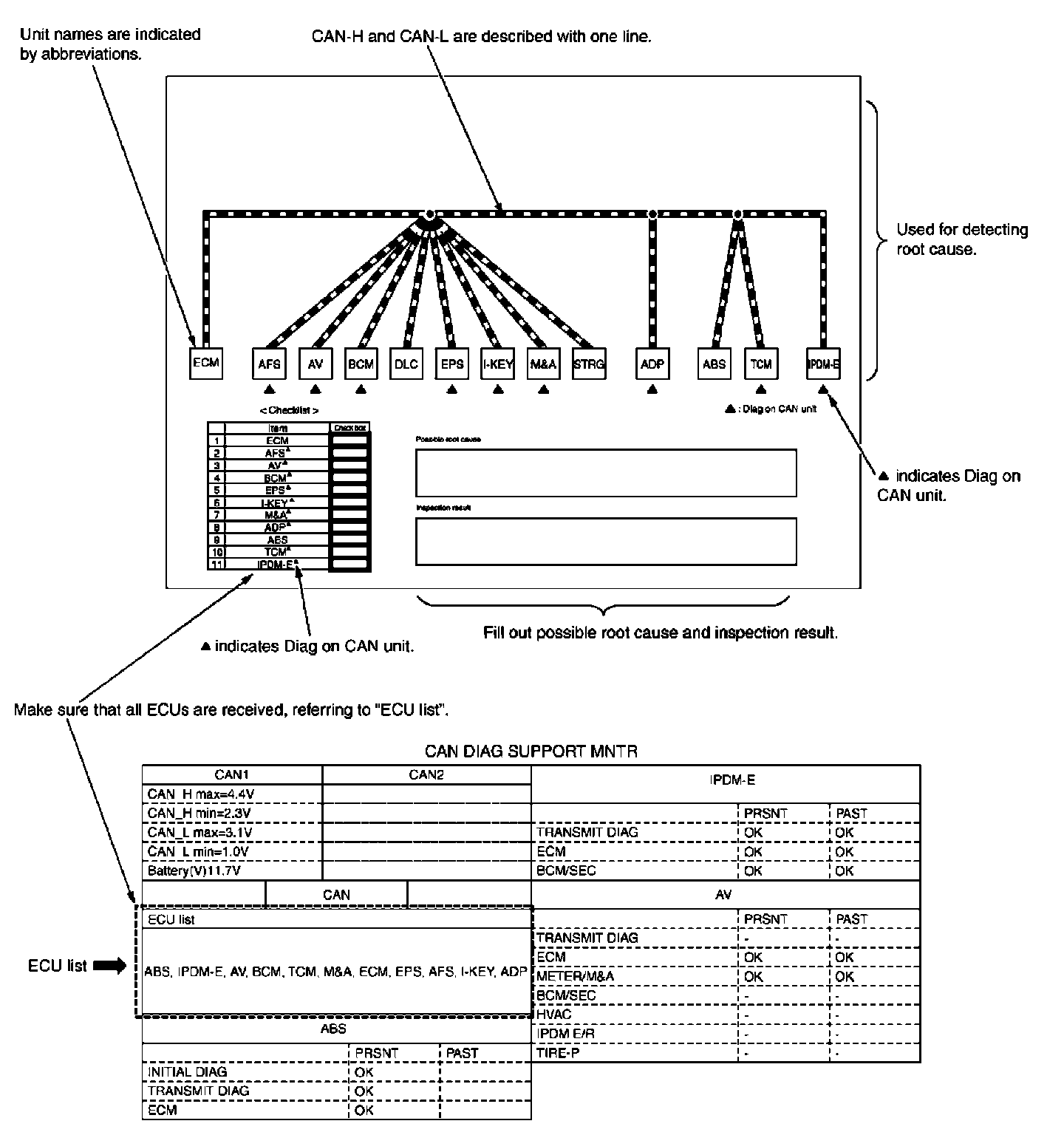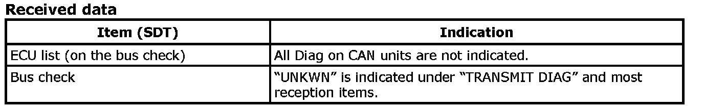 - Diag on CAN units are not indicated on the "ECU list" when the CAN line between Diag on CAN unit and the data link connector is open.