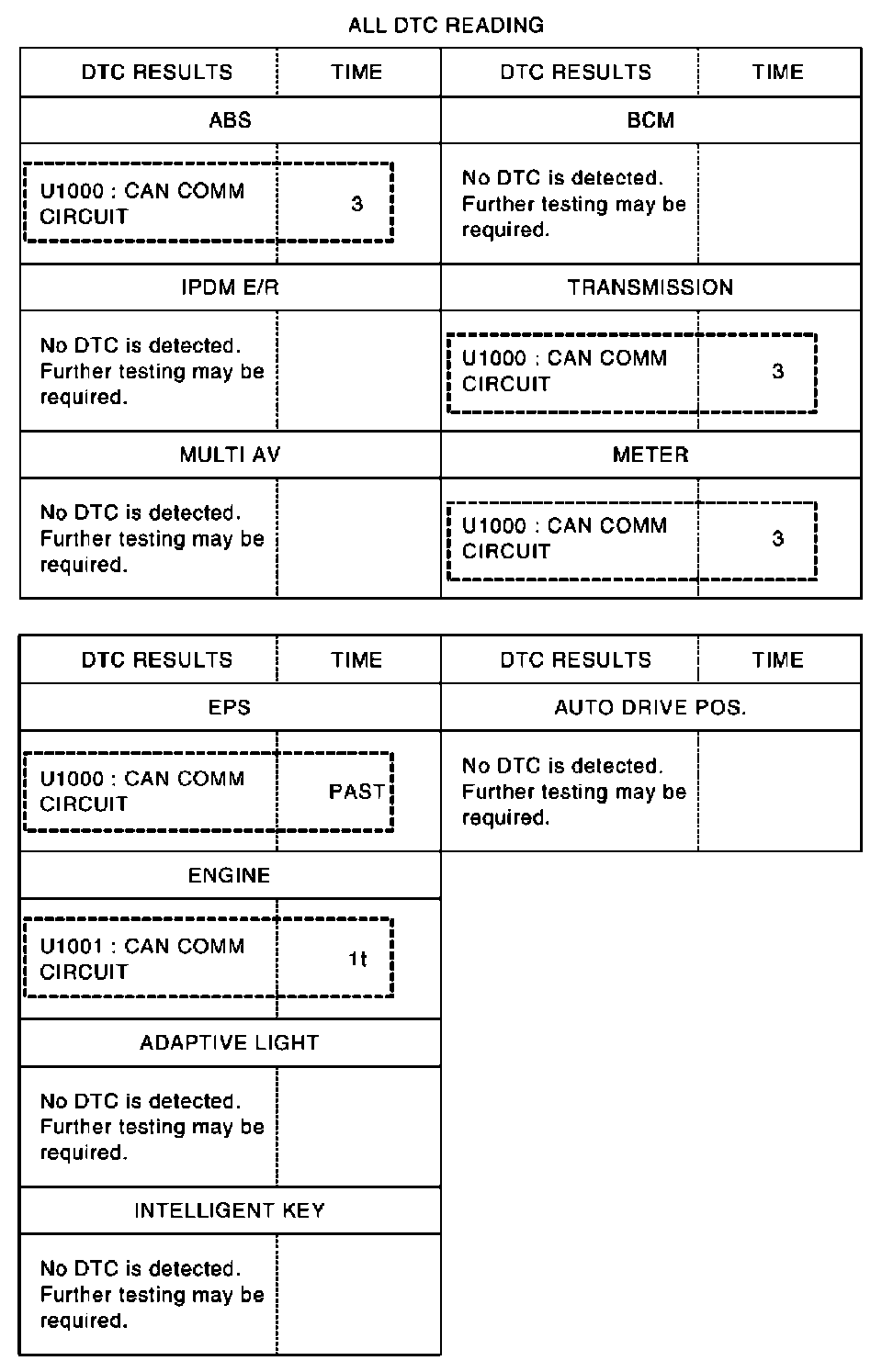NOTE: Root cause cannot be detected using the procedure in this section if "U1000" or "U1001" is not indicated.