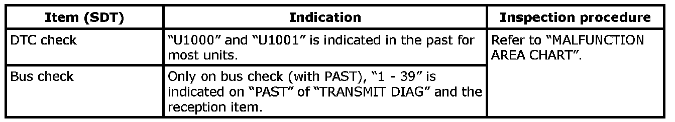 - Check whether or not "U1000" or "U1001" is indicated on DTC check by SDT.