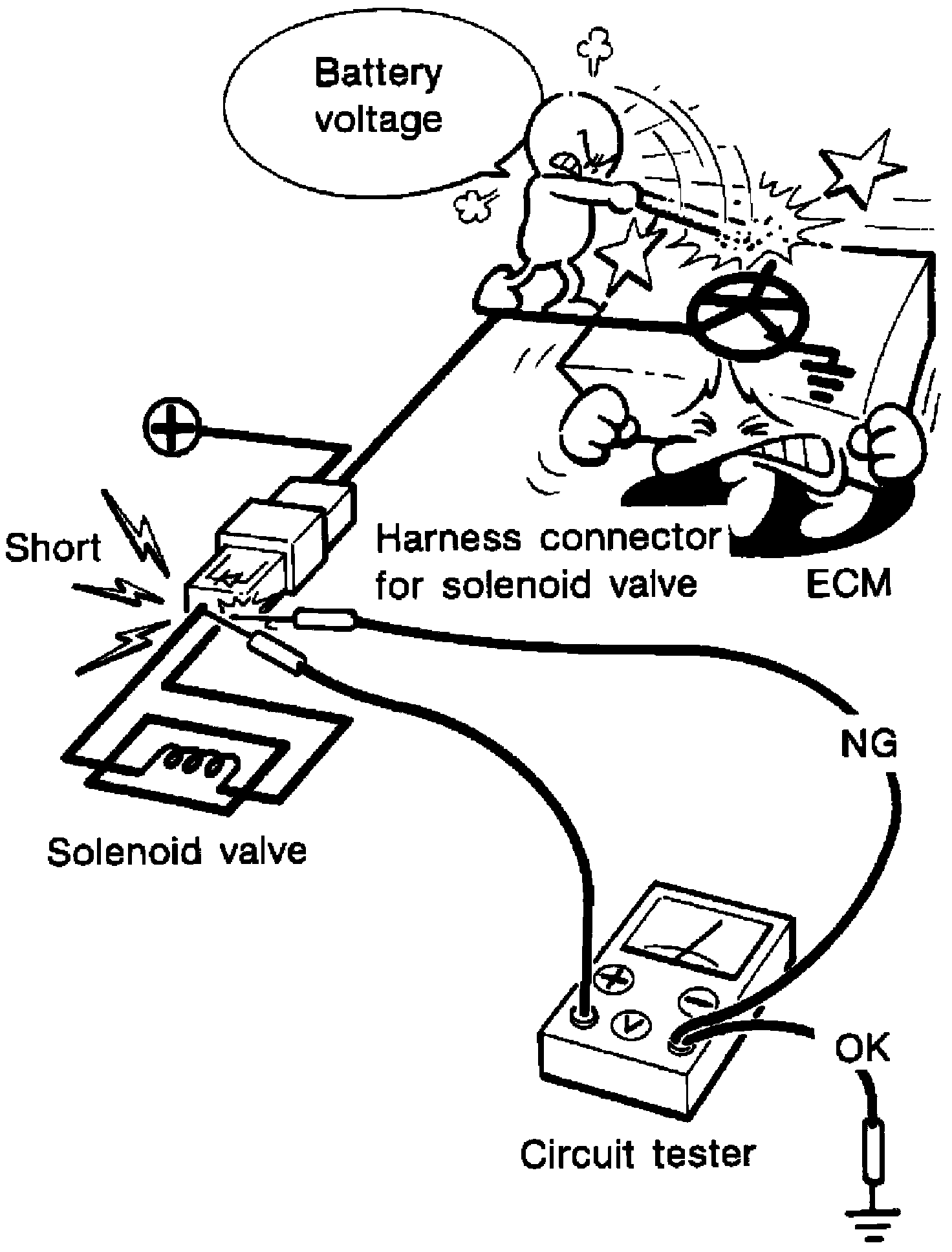 - Do not use ECM ground terminals when measuring input/output voltage. Doing so may result in damage to the ECM's transistor. Use a ground other than ECM terminals, such as the ground.