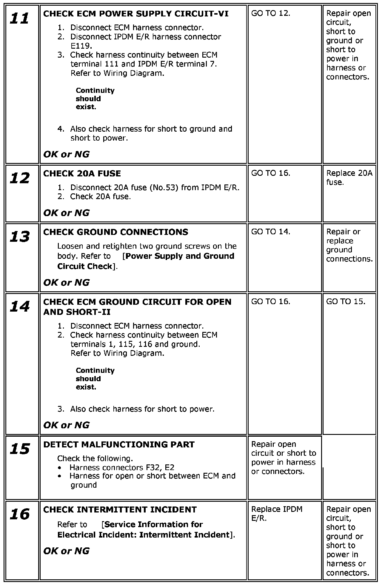 Power Supply and Ground Circuit Check