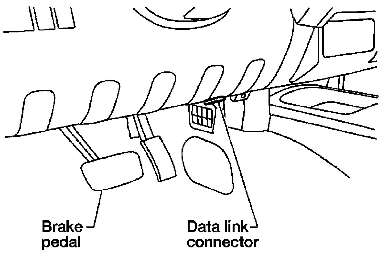 2. Connect GST to data link connector, which is located under LH dash panel near the fuse box cover.