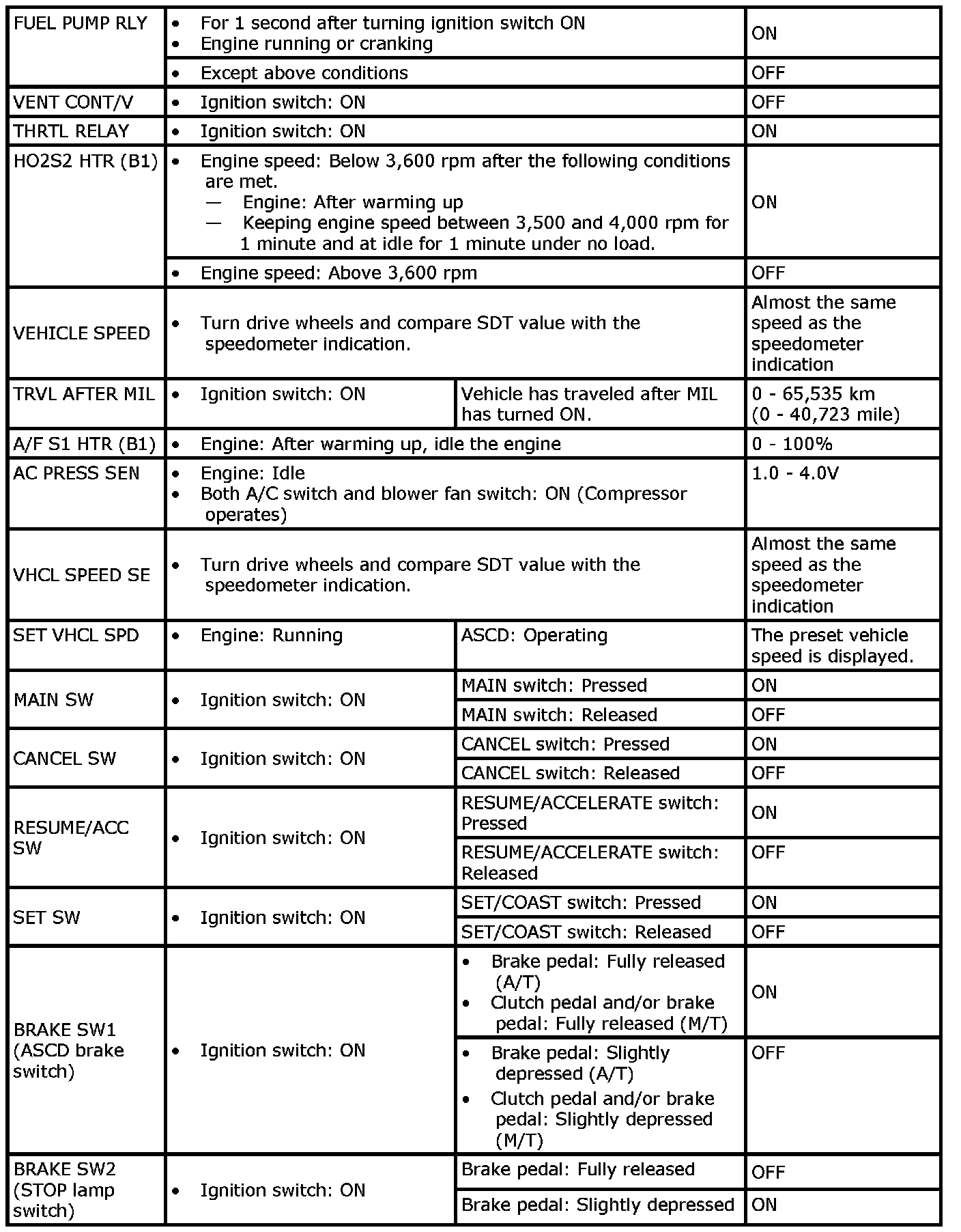 - Specification data are output/input values which are detected or supplied by the ECM at the connector.