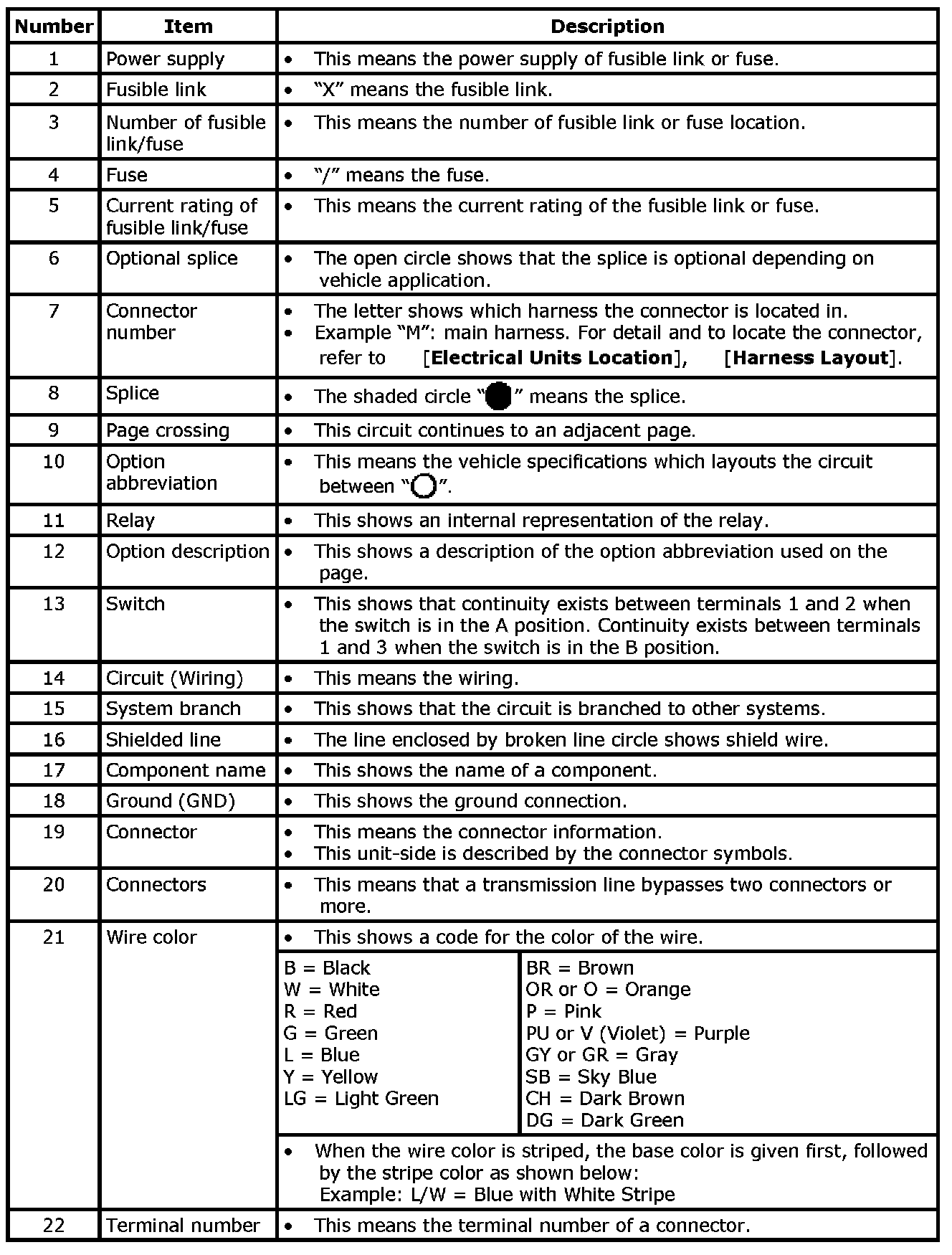 - For detail, refer to following [How to Read Wiring Diagrams].