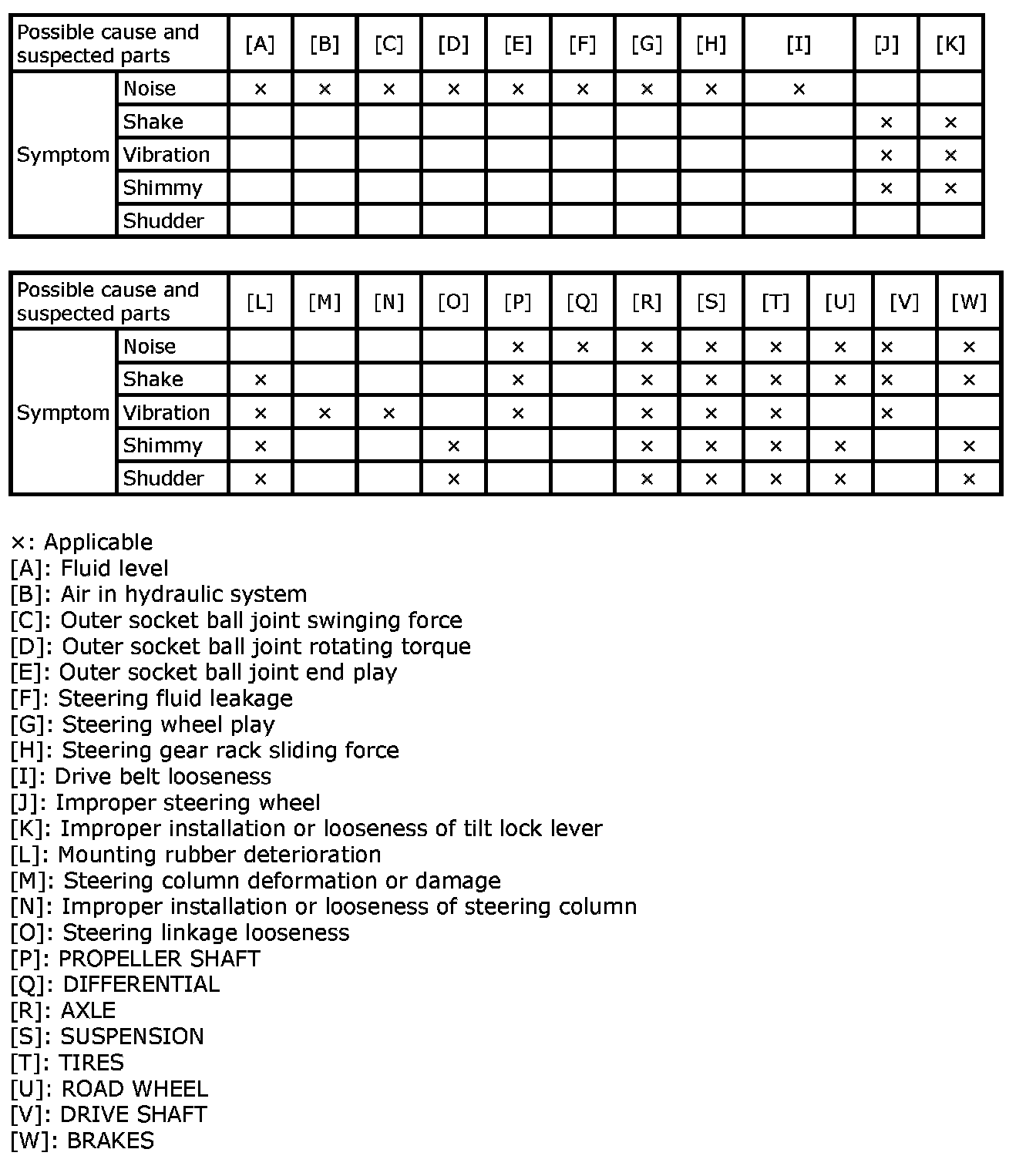 NVH Troubleshooting Chart