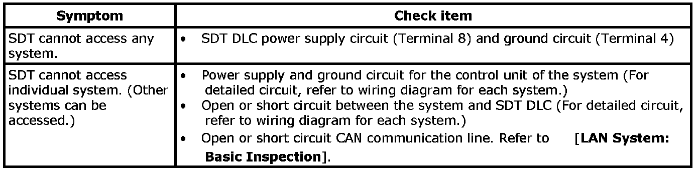 If the SDT cannot diagnose the system properly, check the following items.