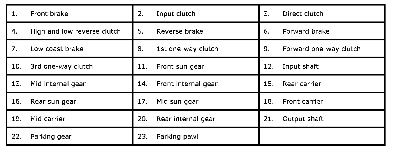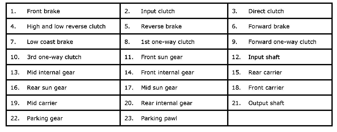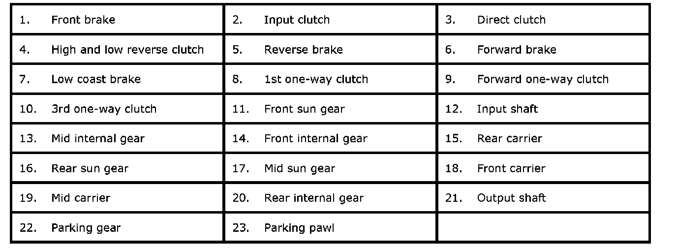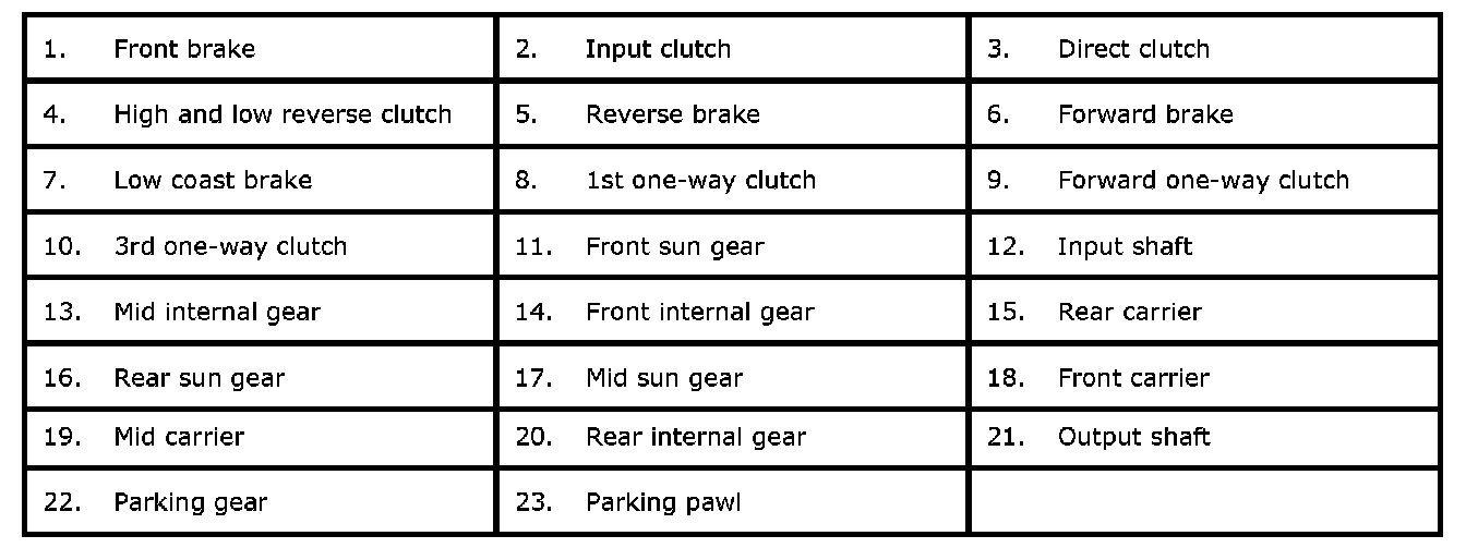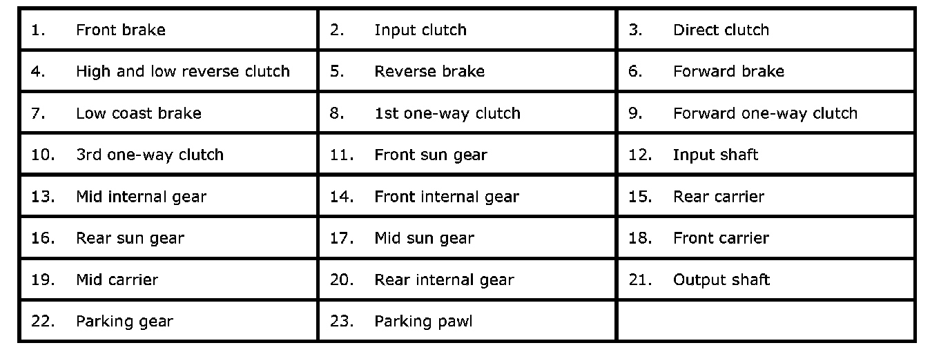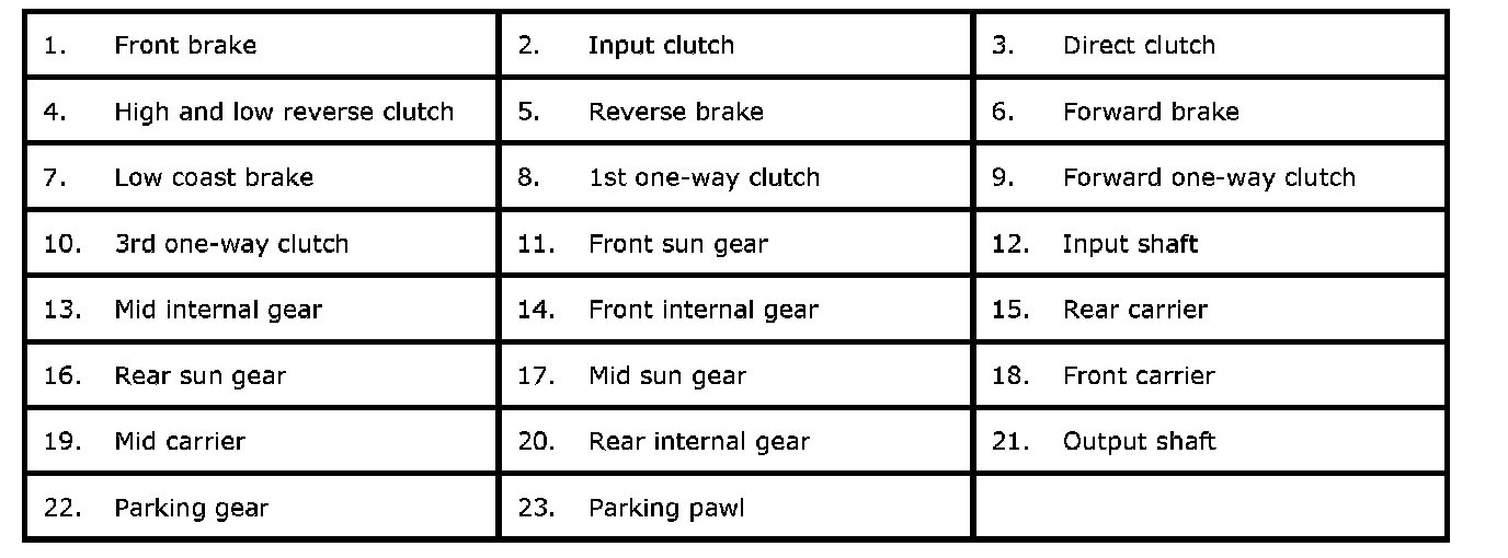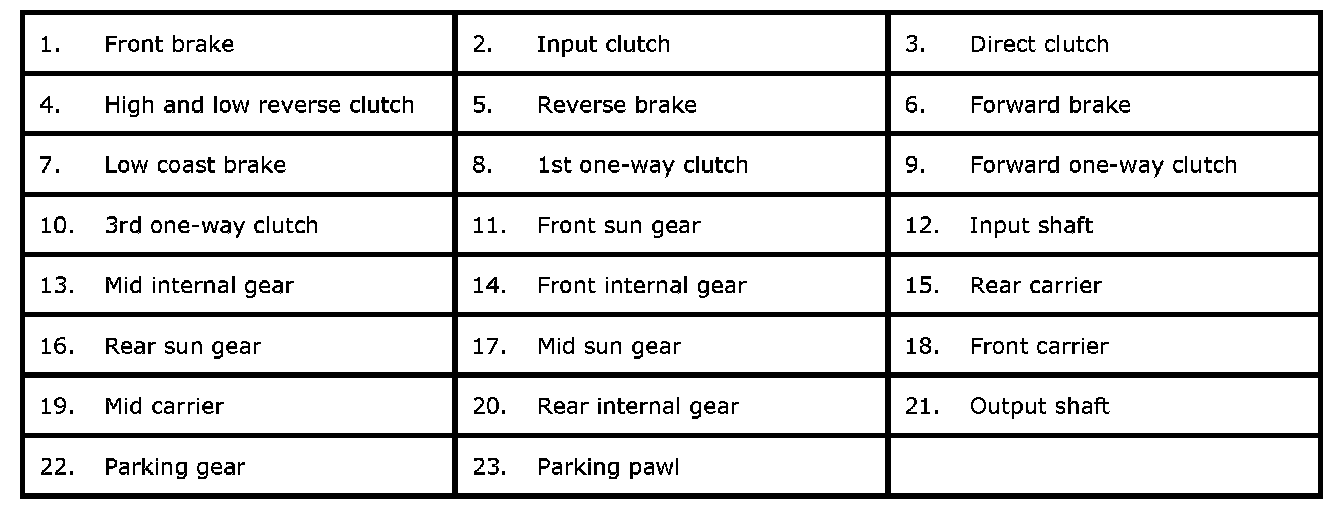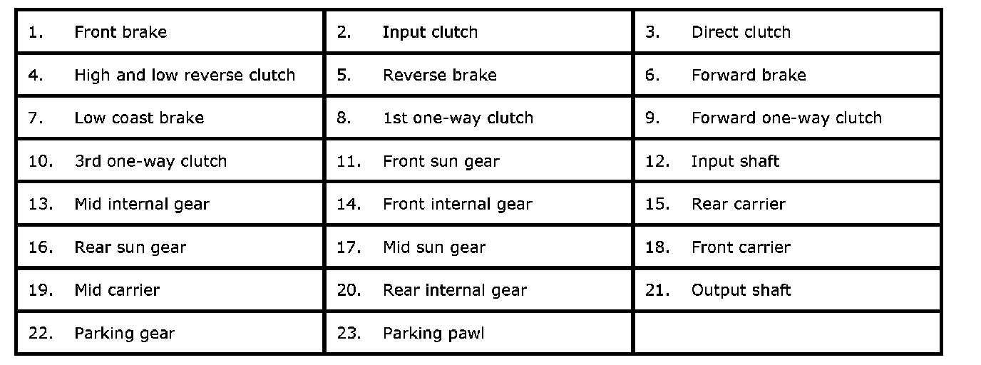 ^ The 1st one-way clutch regulates reverse rotation of the rear sun gear.