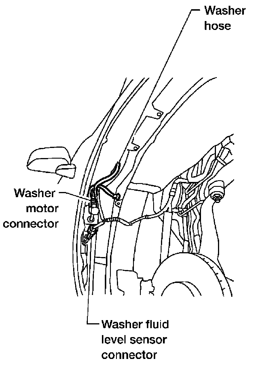 CAUTION: After installation, add water up to the upper level of the washer fluid reservoir inlet and check for water leaks.