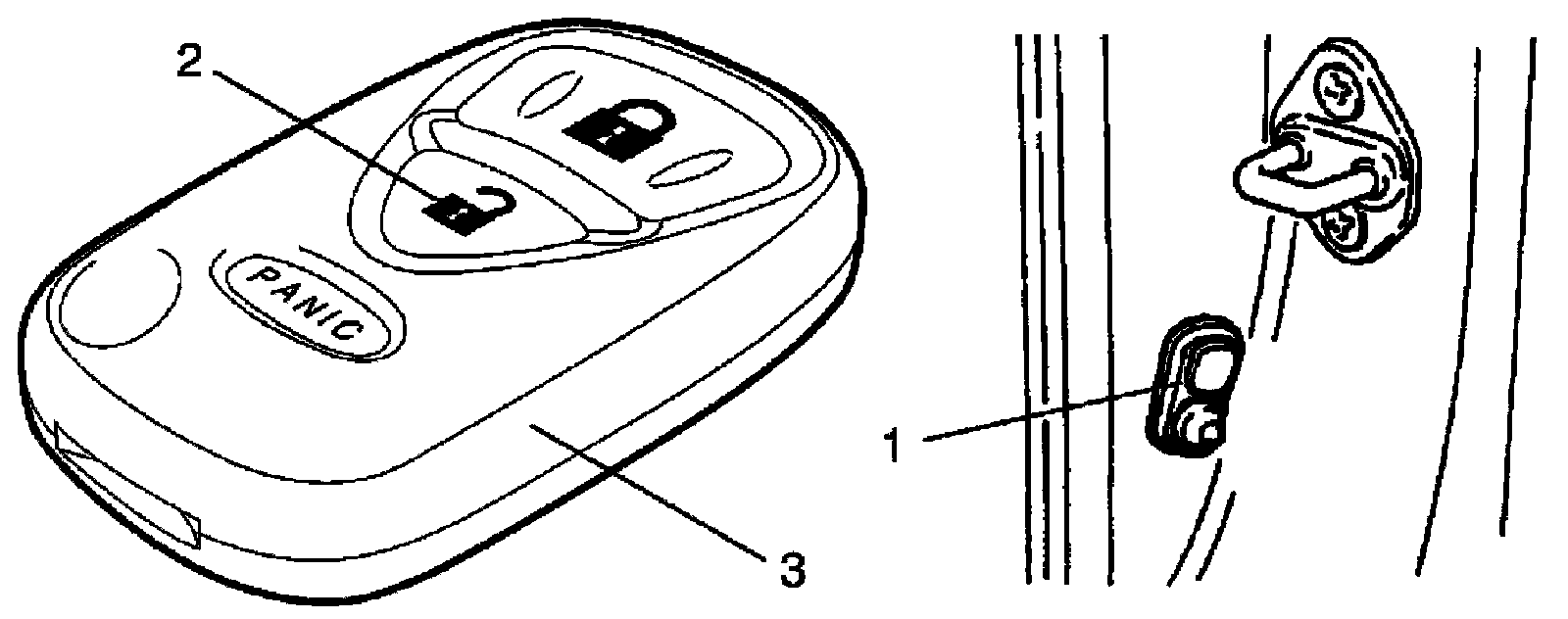 6. Push "UNLOCK" button (2) on transmitter (3) within 20 seconds after Step 5). All doors automatically lock and unlock once.