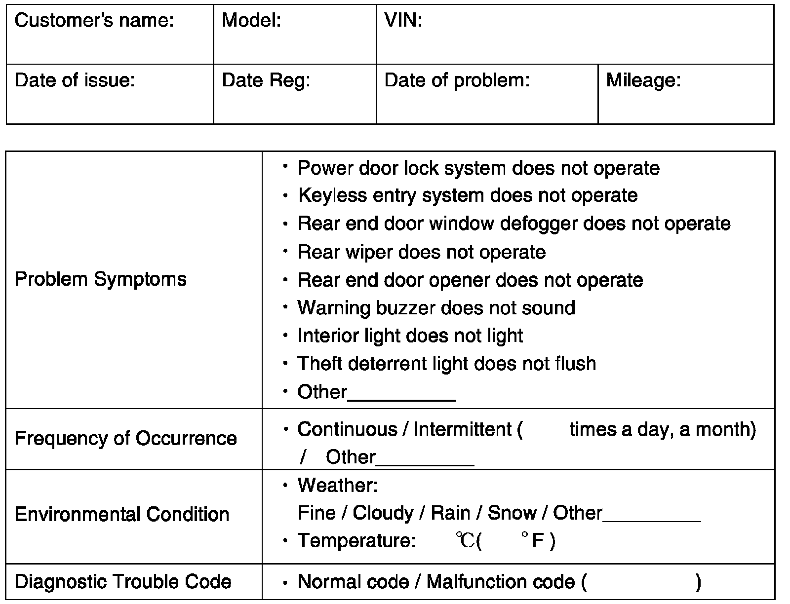 For this purpose, use of such a questionnaire form as shown in the figure will facilitate collecting information to the point required for proper analysis and diagnosis.