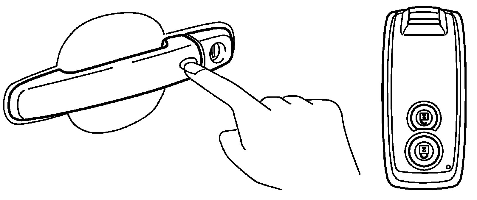 NOTE: If door of which request switch has been pushed is opened/closed before performing Step 4), all door locks will not be released even when Step 4) is performed. If Step 4) is performed after door is opened/closed, only the door of which request switch was pushed will be locked.