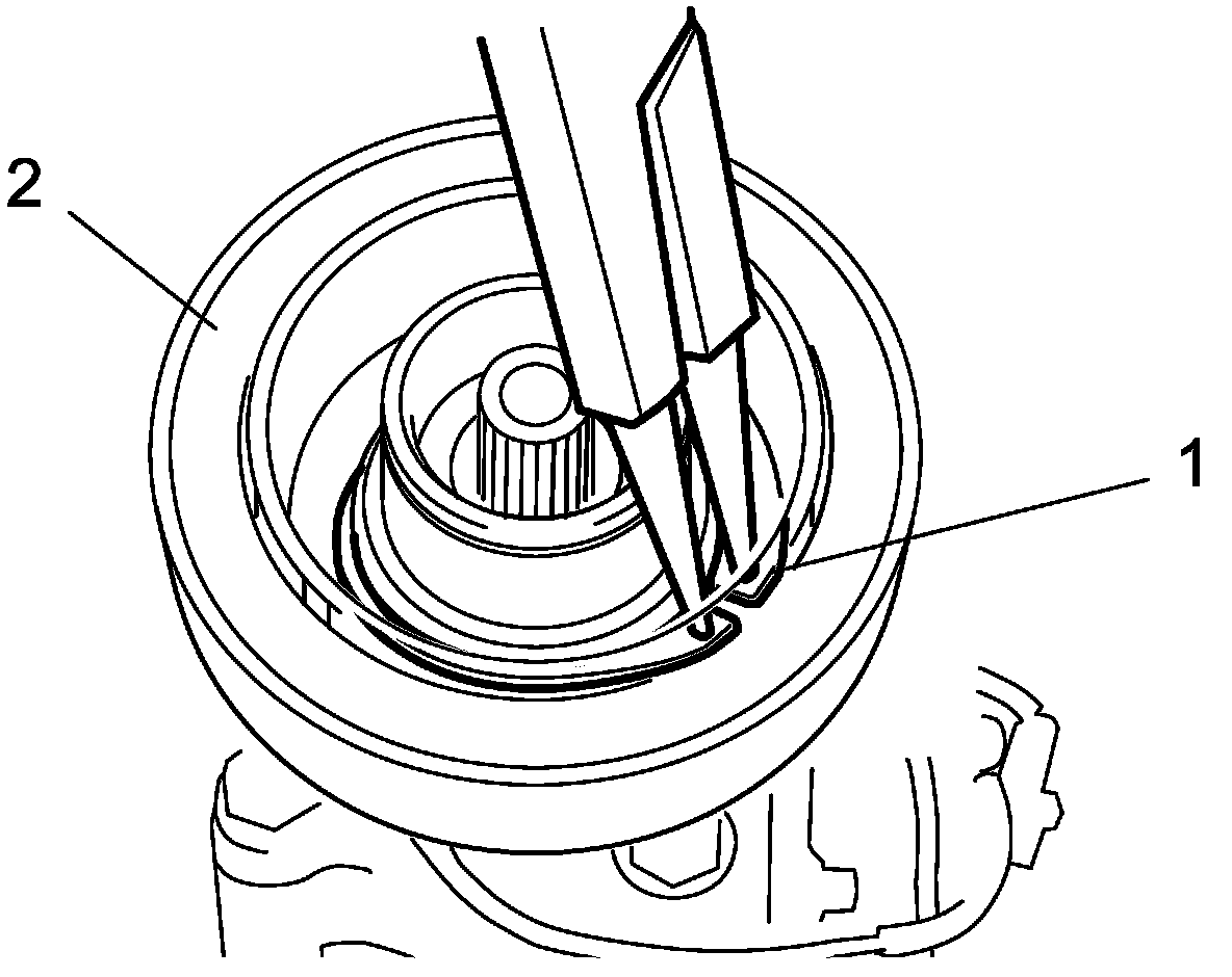 5. Remove snap ring (1) using snap ring pliers (opening type).