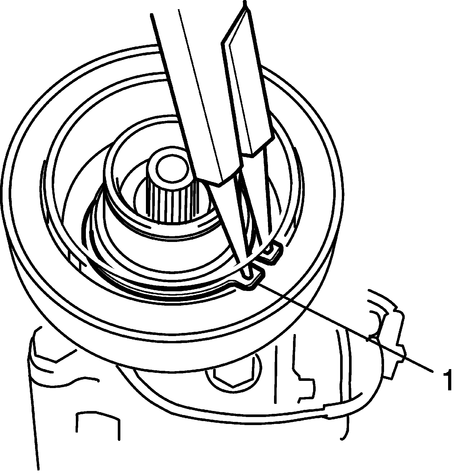 2. Install new snap ring (1) using snap ring pliers (opening type).