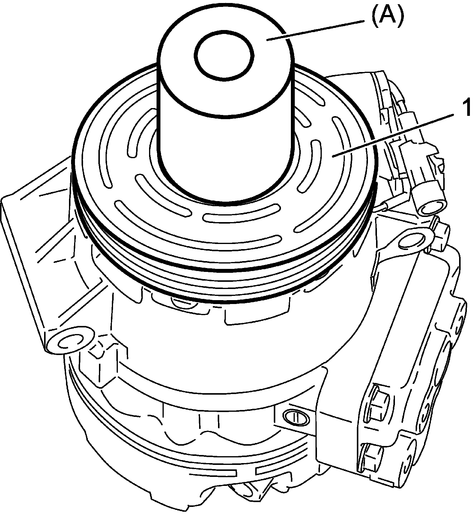 b. Place special tool (A) onto bearing of magnet clutch (1). Ensure that edge rests only inner rase of bearing.