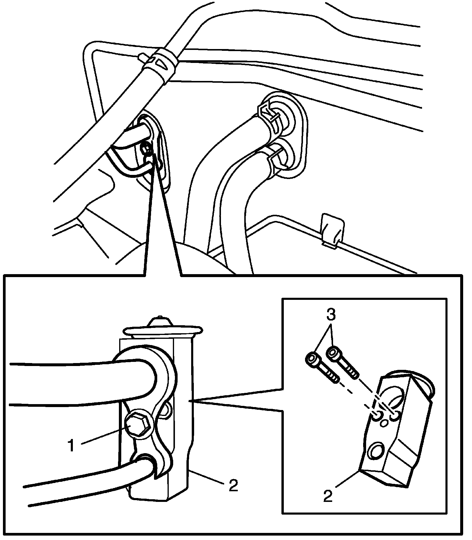 3. Loosen bolts (3) and remove expansion valve.