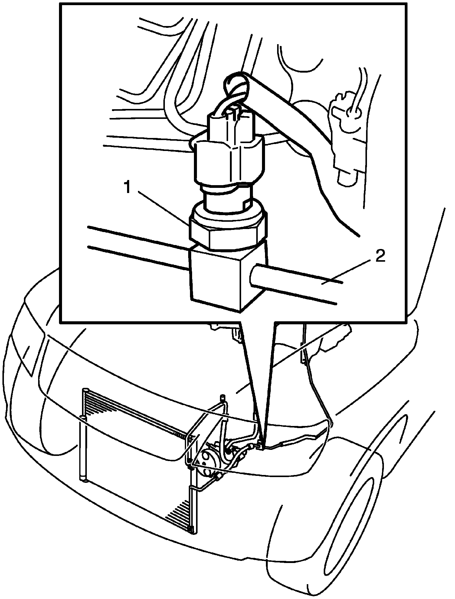 4. Remove A/C refrigerant pressure sensor (1) from liquid pipe (2).