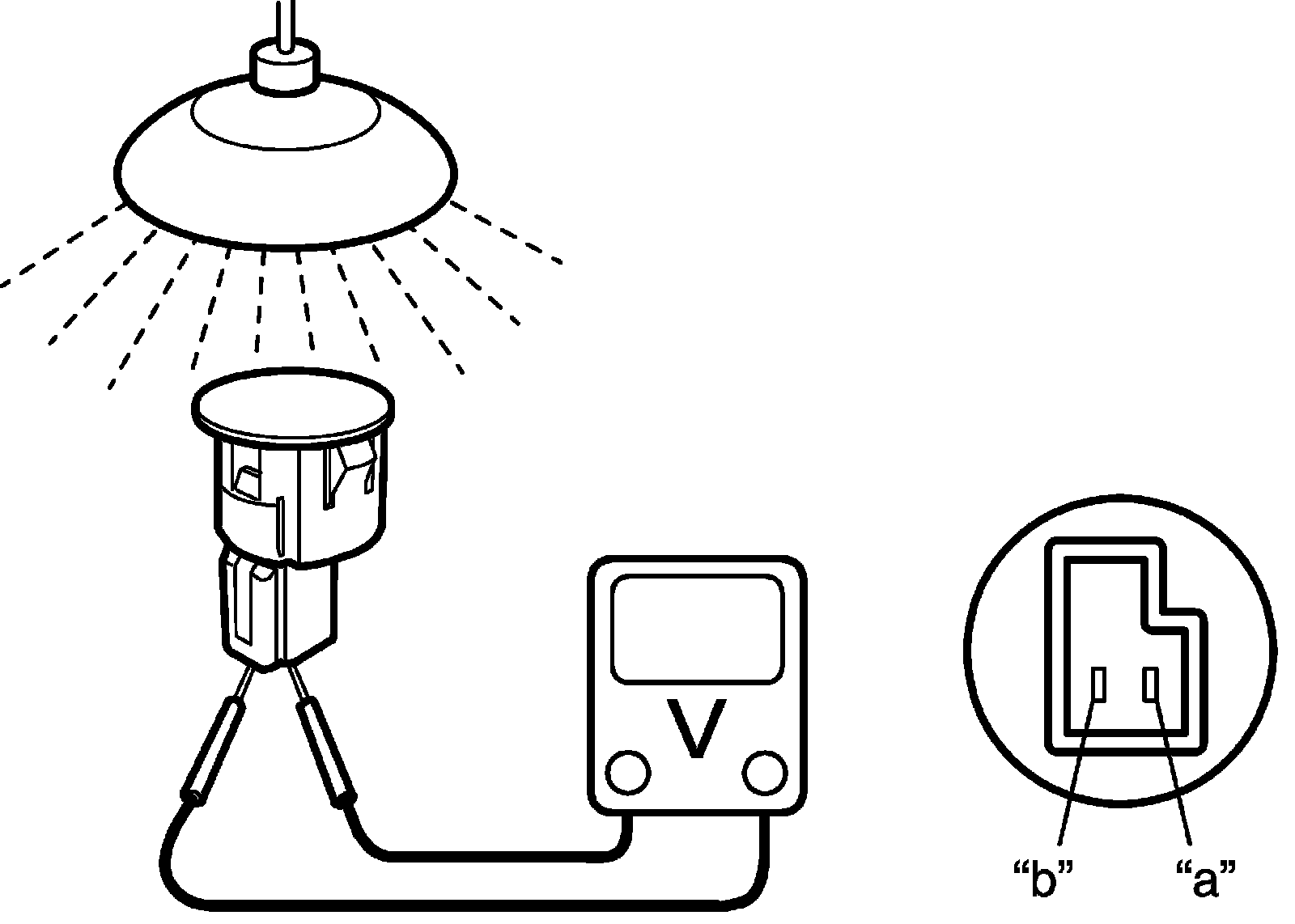 4. Measure the voltage between the terminals with the (+) probe on the terminal "a" and the (-) probe on the terminal "b".