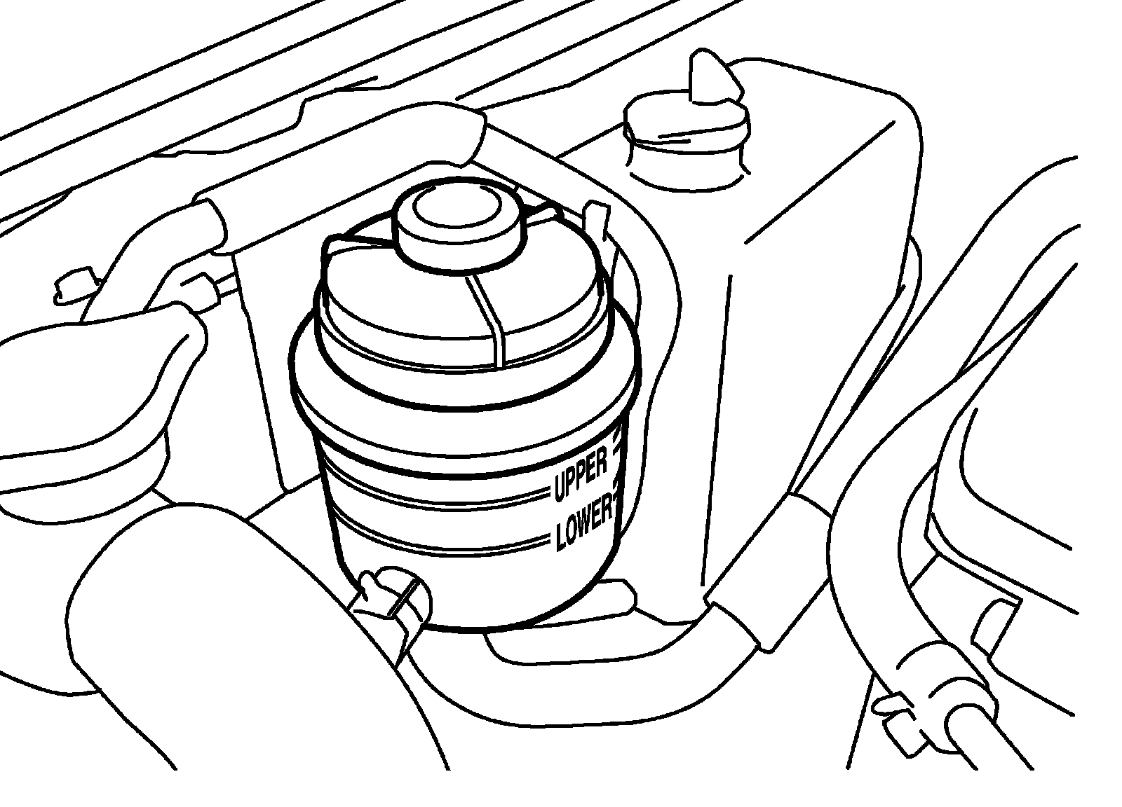 P/S Fluid Level CheckWith engine stopped, check fluid level indicated on P/S fluid reservoir, which should be between "UPPER" and "LOWER" marks. If it is lower than "LOWER" mark, fill fluid up to "UPPER" mark.