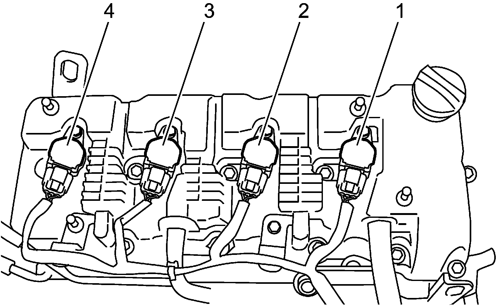 Four cylinders of engine are identified by number; No.1 (1), No.2 (2), No.3 (3) and No.4 (4) counted from crankshaft pulley side to flywheel side.