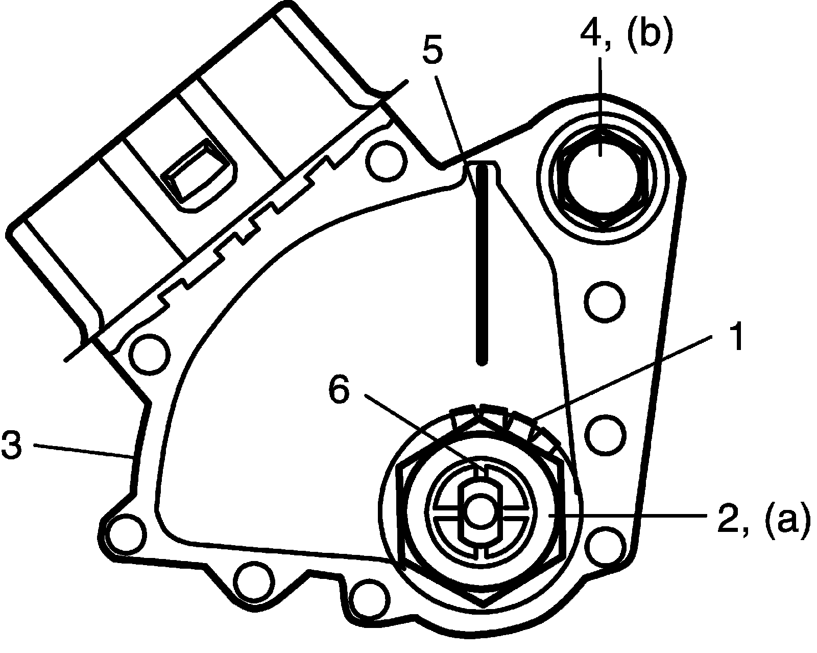 4) With "N" reference line (5) on range sensor and shaft center (6) aligned, tighten transmission range sensor bolt (4) to specified torque.